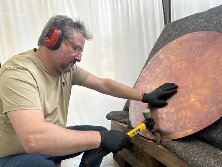 2019 begann ich, meine eigenen Gongs in Handarbeit herzustellen. Jedes Stück ist ein Unikat – mit der bewussten Absicht, Körper, Geist und Seele zu berühren und Heilung zu fördern. Ich experimentiere mit Legierungen, Farben und Klangeigenschaften, um Instrumente zu erschaffen, die sowohl ästhetisch als auch spirituell wirken.
