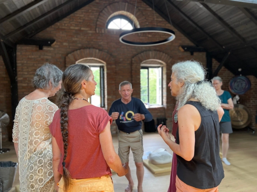 Der Tag beginnt früh mit stiller Meditation, Schweigezeit und sanften Yogaübungen. In der Meditation am Wasser lauschen wir seiner Sprache und den Liedern, die in ihm wohnen. Thomas führt uns durch Meditation, Achtsamkeit und Körperarbeit. Er leitet gemeinsam mit seiner Frau Sabine auch die Ausbildung in schamanischer Ritual- und Energiearbeit, die 2027 wieder auf der Rigi stattfinden wird. Ailloš begleitet uns in die Welt des Joikens, in die Klang- und Naturverbindung dieses alten nordischen Gesangs.
