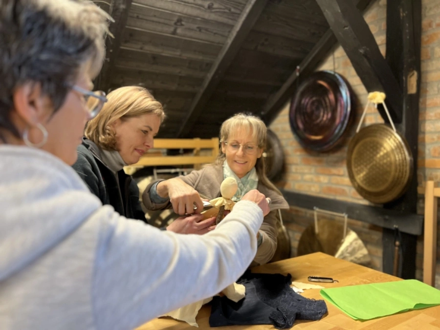 Malin und Sabine begleiten Dich durch diesen Prozess mit grosser Fürsorge. Du arbeitest eigenständig und erhältst doch dort eine stützende Hand, wo Du sie brauchst. Wir vergleichen diese Begleitung gerne mit dem Wirken einer Doula – Geburtsbegleiterin. Doula bedeutet “Freundin der Gebärenden“. Bevor Deine Trommel vollendet wird, geht sie durch die erfahrenen Hände der Ritualbegleiterinnen, um sicherzustellen, dass sie weder überspannt noch zu lose ist und sich keine Fehler einschleichen.