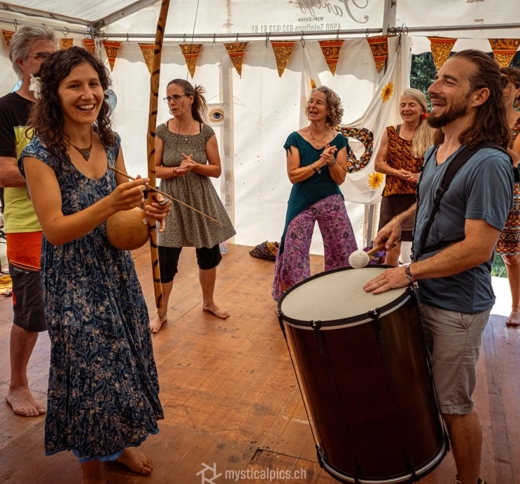 TaKeTiNa verbindet rhythmische Meditation, Improvisation, Körperbewegung, Call‑Response‑Gesänge und gemeinsame rhythmische Muster. Es schafft Raum, in dem Achtsamkeit, Intuition und Körper‑Bewusstsein wachsen, und beruhigt das Nervensystem. Das Wahrnehmen mehrerer rhythmischer Ebenen stärkt Fokus und Flexibilität, fördert deine Balance und regt die Kreativität an. TaKeTiNa lädt dich ein, Rhythmus als Quelle von Lebensfreude und innerer Klarheit zu entdecken.