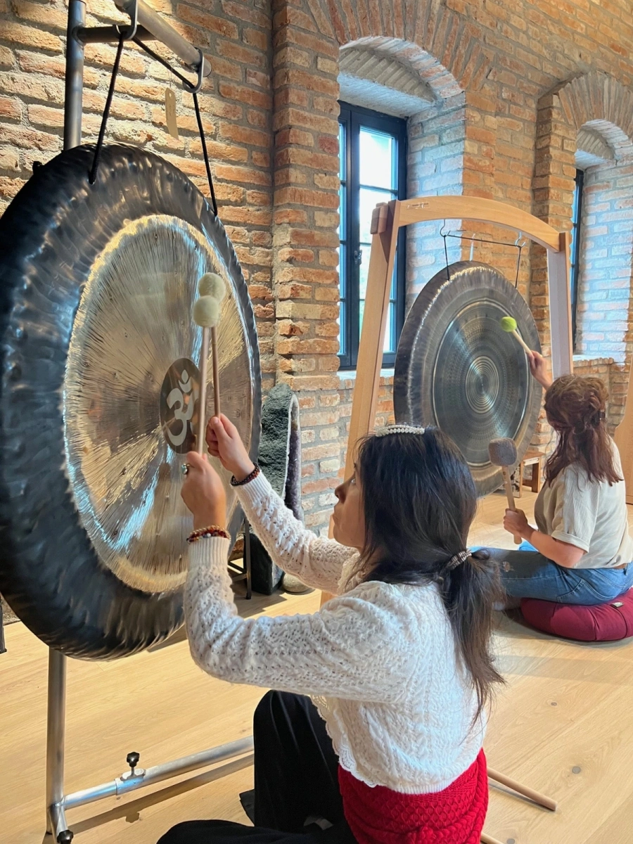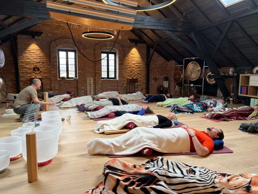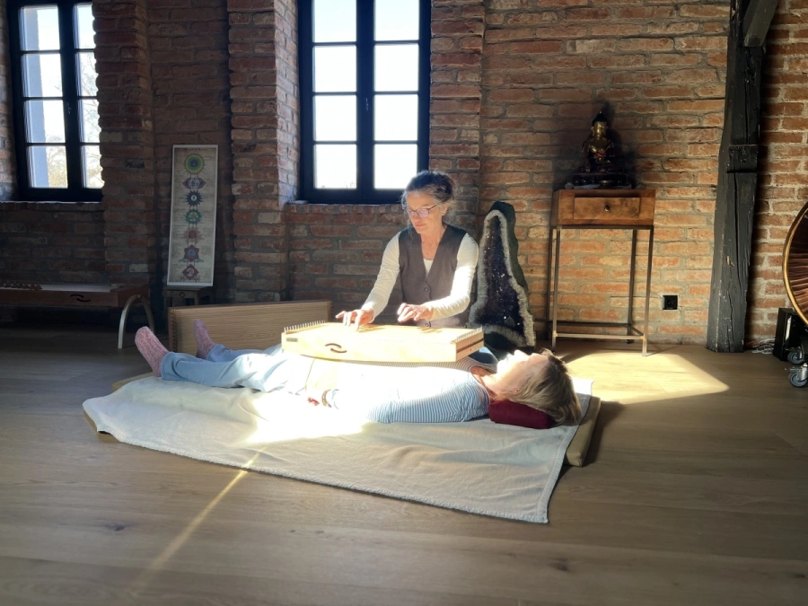 Du lernst eine grosse Vielfalt von Instrumenten kennen, die alle vor Ort zur Verfügung stehen: Monochord, Klangliege, tibetische Klangschalen, Gongs, Kristallklangschalen, Schamanentrommel, Rassel, Stimmgabeln und Deine eigene Stimme als intuitives Werkzeug. Alles fügt sich zu einem umfassenden therapeutischen und spirituellen Verständnis – vom feinen Wahrnehmen in der Klangtherapieutischen Einzelbehandlung, über den Aufbau einer Klangsession bis hin zu energetischen und rituellen Elementen. Klangreisen, Klangbäder und geführte Tiefenentspannungen wie Yoga Nidra erweitern Dein praktisches Spektrum.