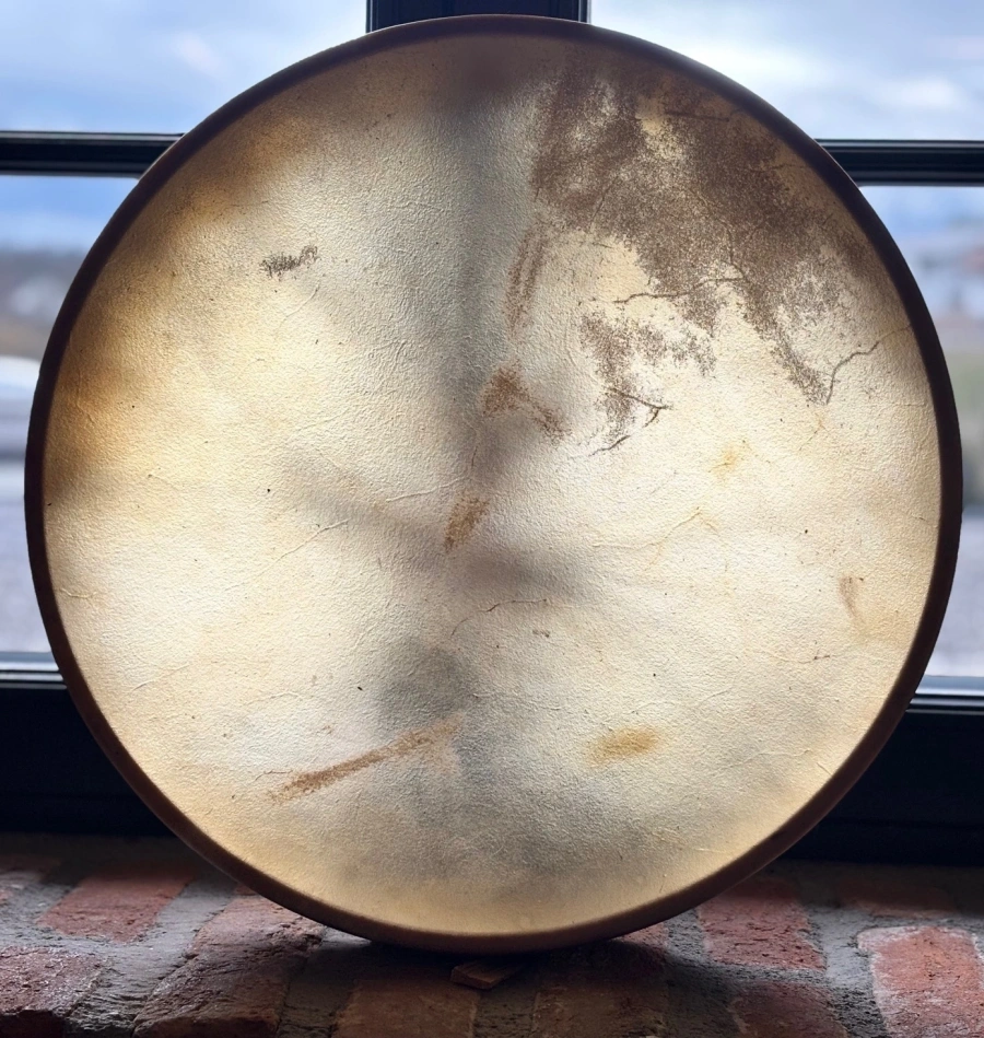 Die natürlich behandelte Pferdehaut erzeugt einen vollen, ausgewogenen Klang mit klarer Ansprache und feiner Obertonstruktur. Ihre dichte, elastische Faserstruktur sorgt für stabile Spannung, gleichmässige Schwingung und eine lange Resonanz. So entsteht ein Klang, der sich von sanft und weich bis kraftvoll und präsent entfalten kann und vielseitige Formen von Meditation, Ritualarbeit und schamanischer Praxis begleitet.