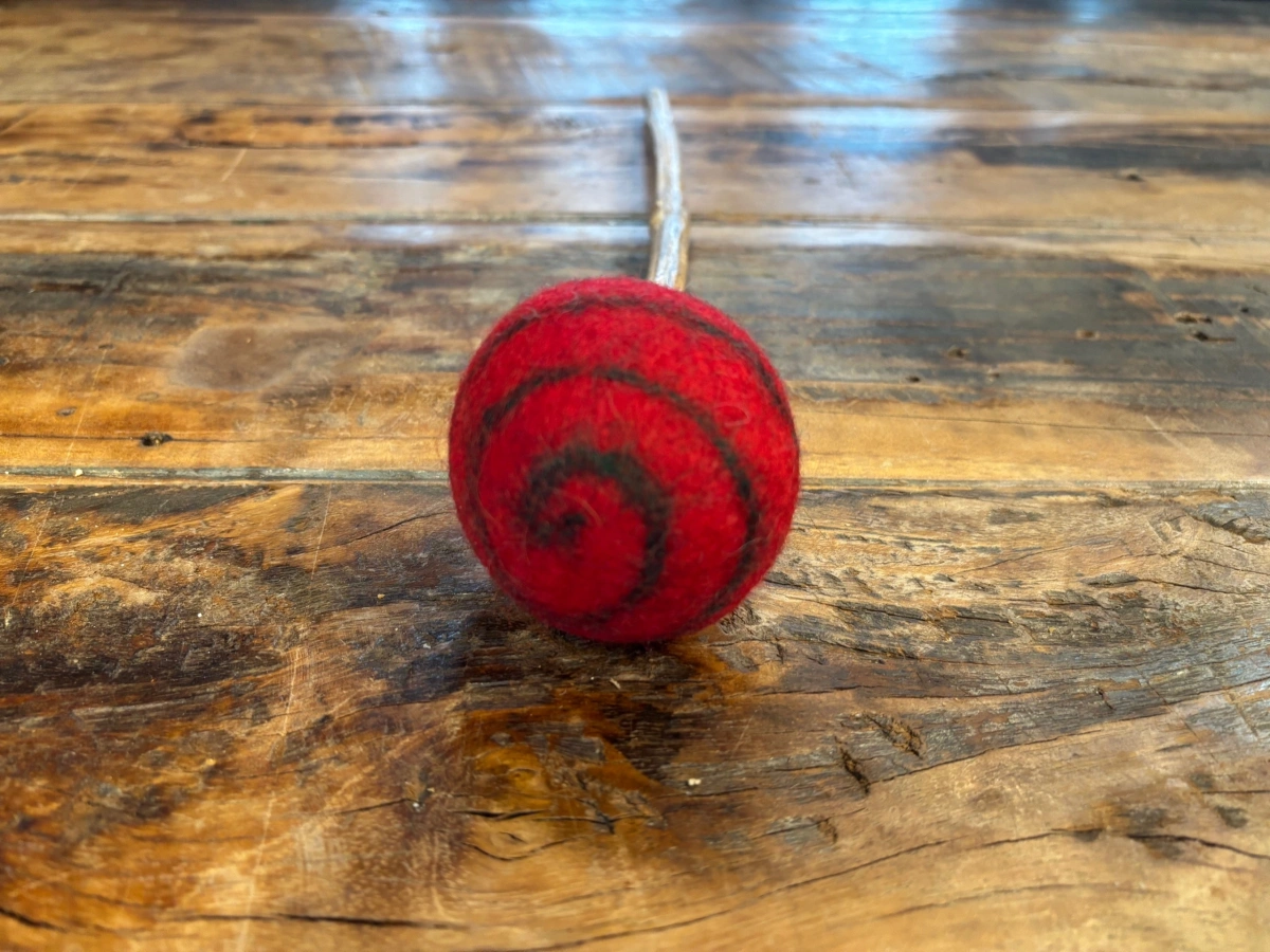 Motherdrum Filzball Trommelstock aus Naturholz, 35 cm lang und 65 g leicht. Der Filzball aus weicher Schafwolle schenkt der Trommel einen warmen Trommelschlag und erfüllt den Raum mit einem ruhigen, erdenden Puls. Ein sanfter Begleiter für Klangarbeit, Rituale und meditative Reisen.