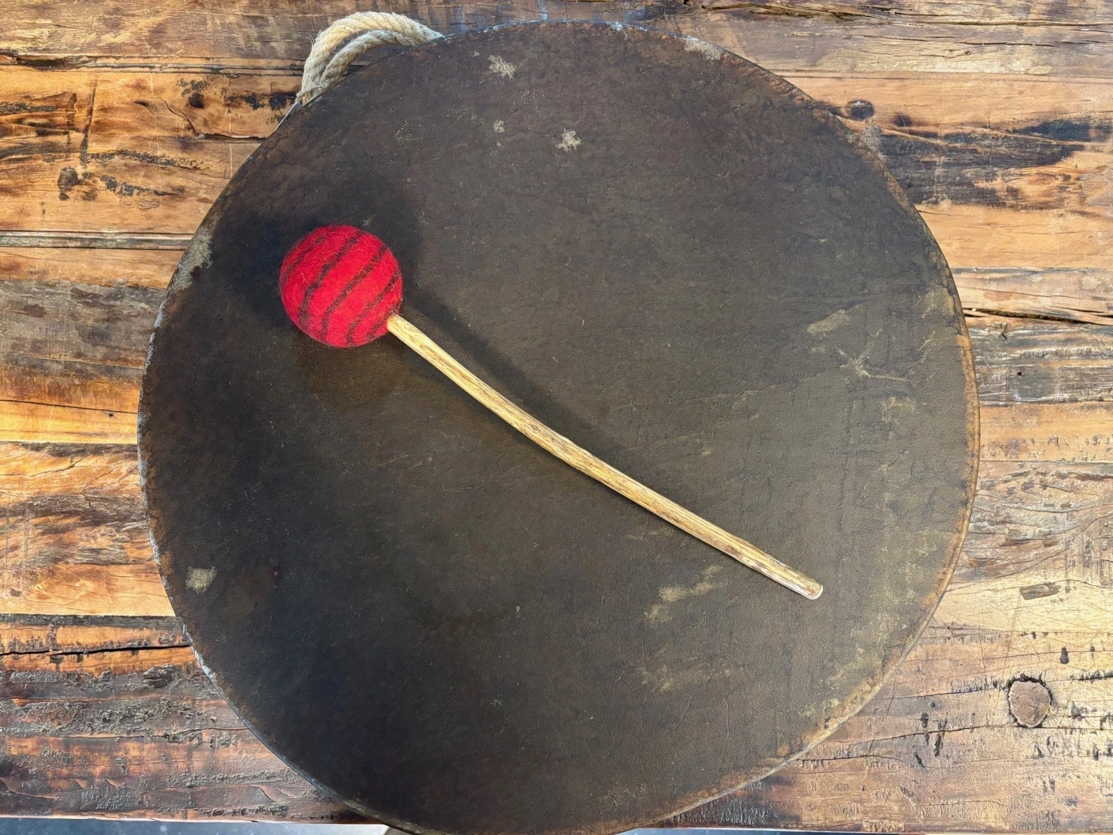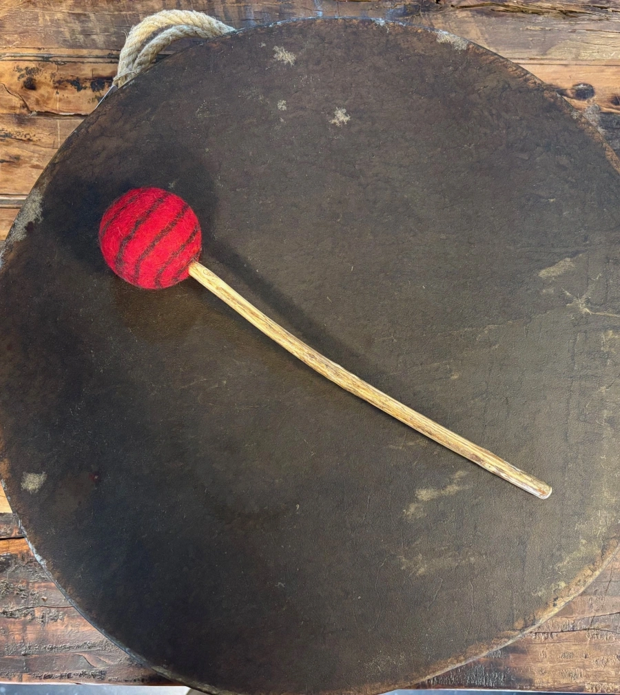 Dieser Trommelstock eignet sich für Klangarbeit, Rituale und meditative Reisen. Er trägt die Ruhe und Kraft natürlicher Materialien in sich und lässt Dich mit jedem Ton tiefer in den Herzschlag der Motherdrum eintauchen.