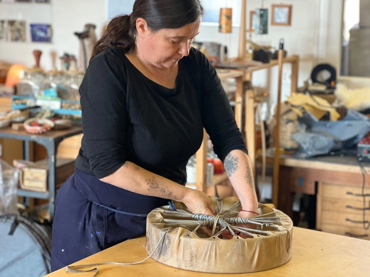Die verwendeten Ziegenhäute stammen aus verantwortungsvollen Quellen. Durch den Trommelbau erhalten sie eine bewusste und würdige Weiterverwendung als Klanginstrument und werden in Handarbeit zu einzigartigen Begleiterinnen verarbeitet.
