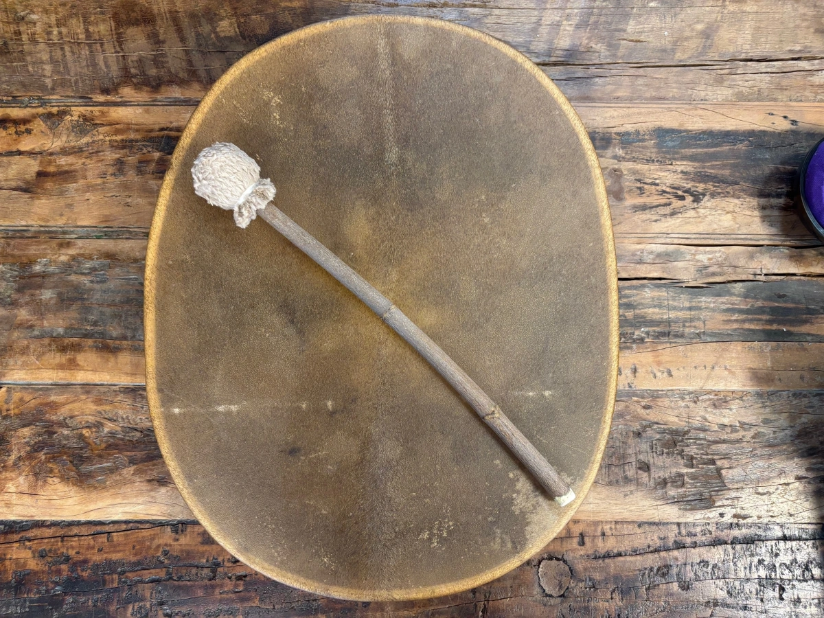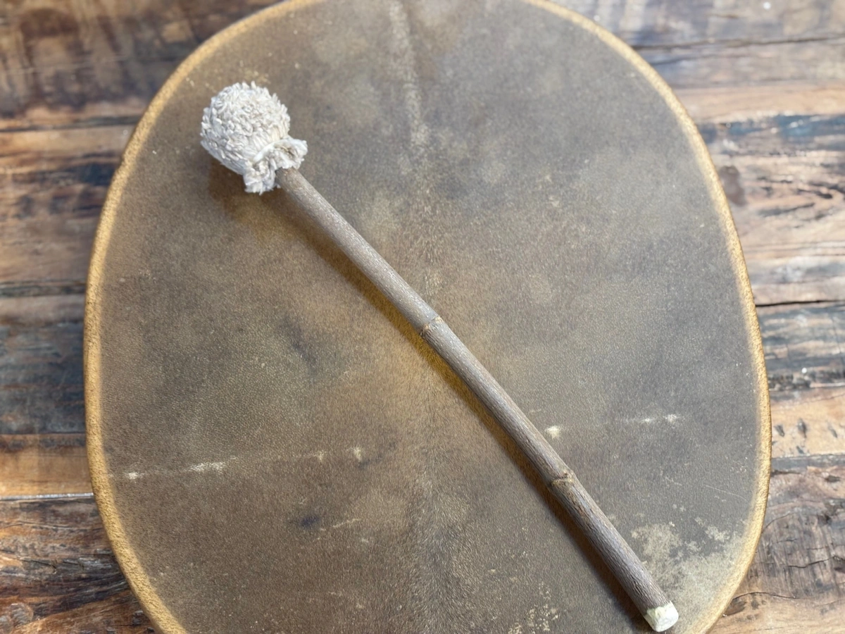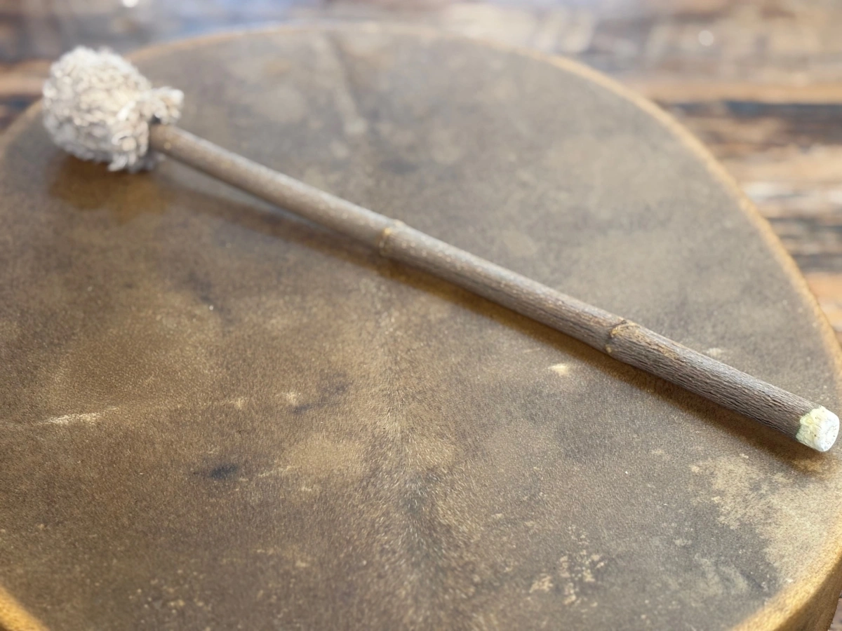 Der warme, gedämpfte Anschlag entlastet die Trommelhaut und lässt den Klang dennoch voll und tief entstehen. So bleibt die Verbindung zur Trommel liebevoll und achtsam, auch wenn die Spannung hoch ist. Der Trommelstock führt als männliches Element den Impuls, während die Trommel als weibliches Gegenüber den Klang empfängt und trägt.