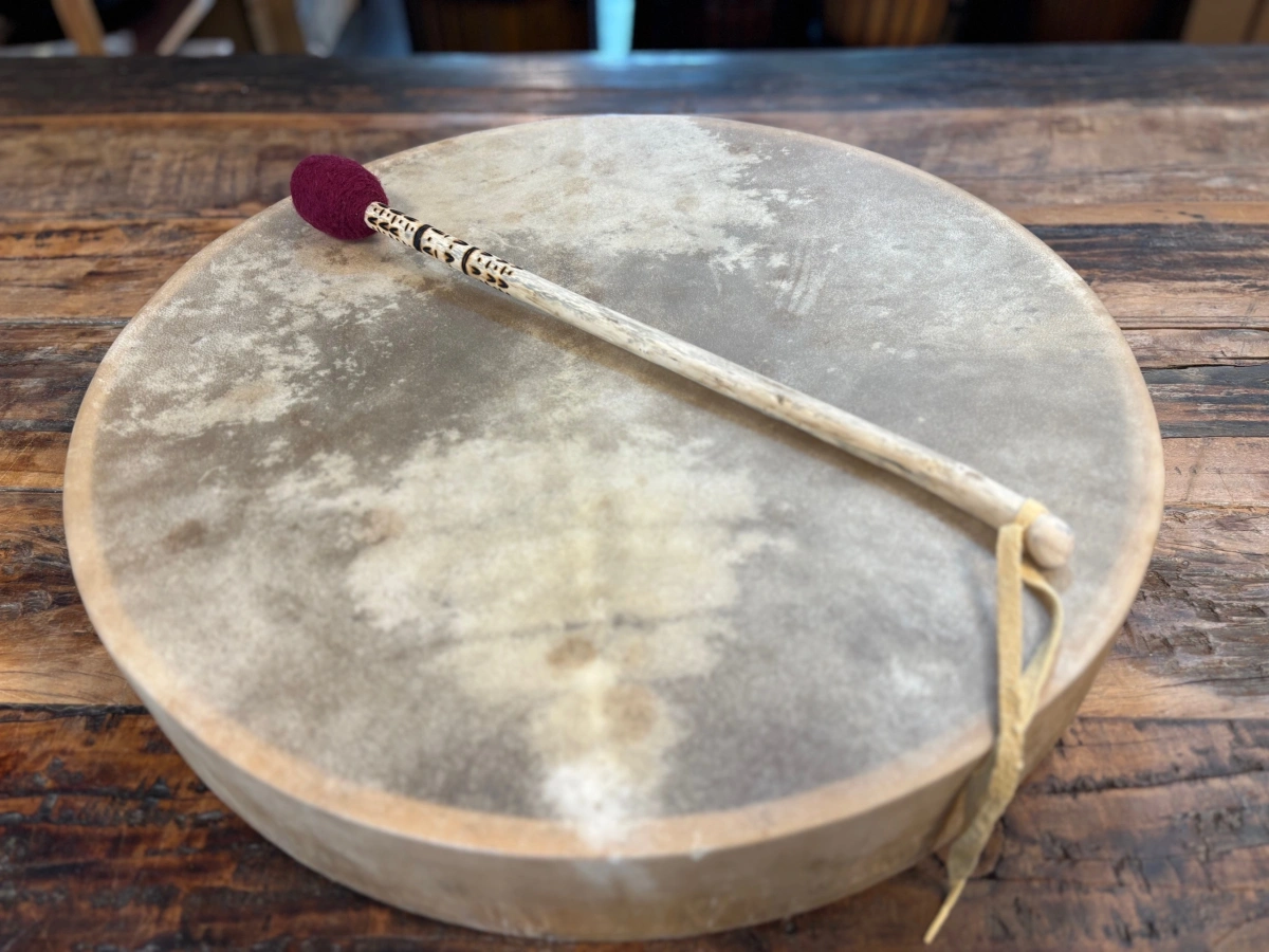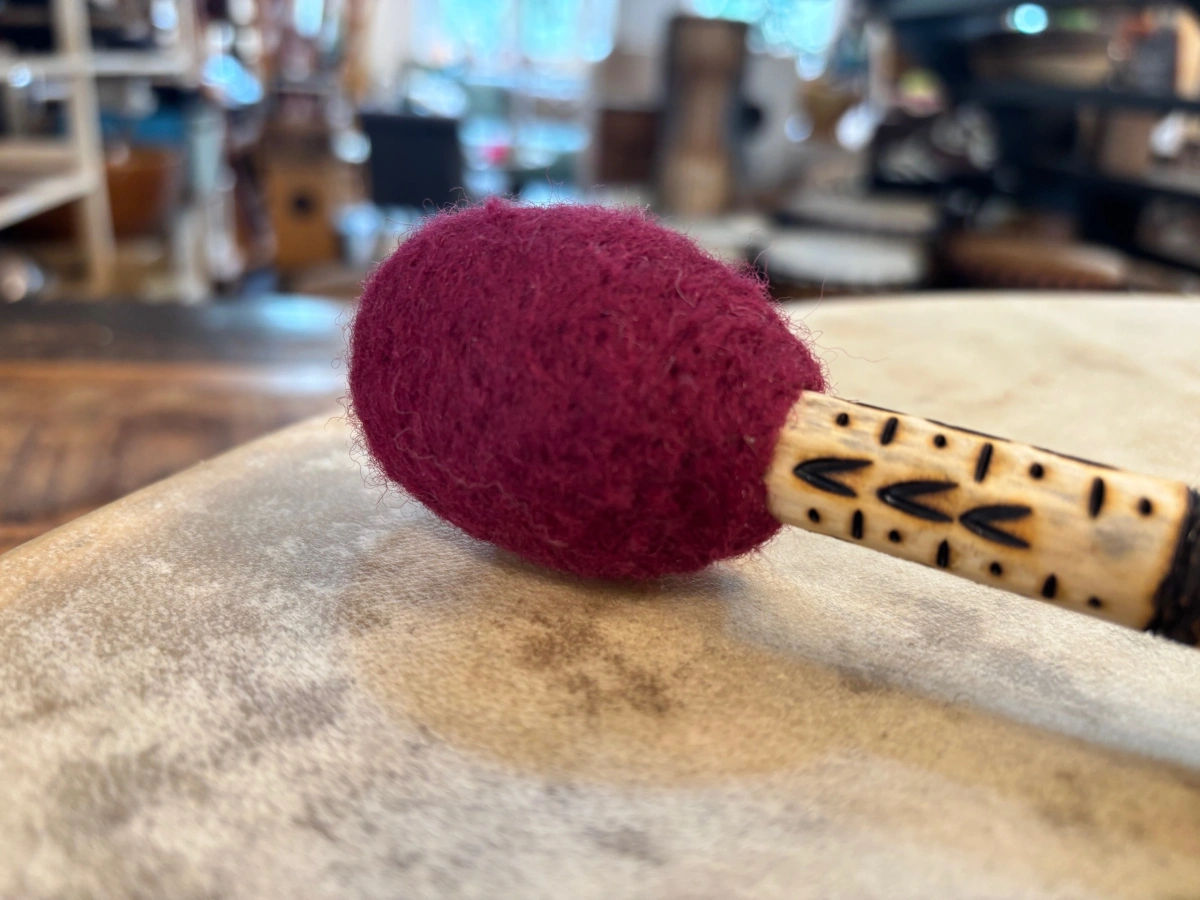 Mit liebevoller Hand gefertigt, trägt dieser 45 cm lange Trommelstock die Kraft der Natur in sich. Der Filzklöppel aus ProSpecieRara-Wolle schenkt ihm einen weichen, warmen Klang – erdend, rund und tief berührend.