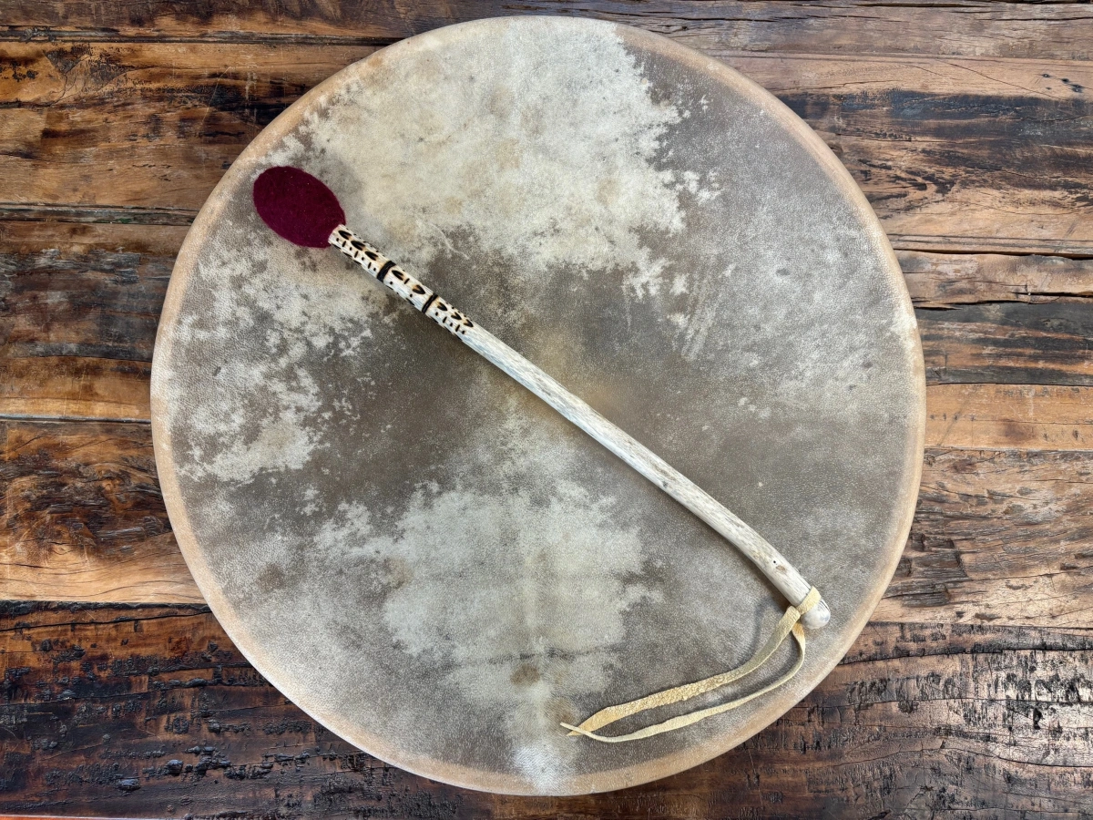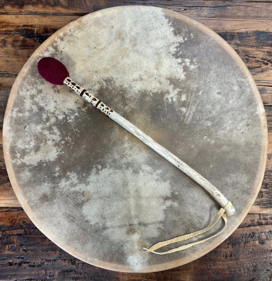 Mit Achtsamkeit gefertigt, begleitet dich dieser 45 cm lange Trommelstock auf deiner schamanischen Reise. Der Filzklöppel aus ProSpecieRara-Wolle schenkt sanfte, warme Klänge, die tief in die Erde führen und zugleich den Raum öffnen – ein Klang, der Herz und Geist verbindet.