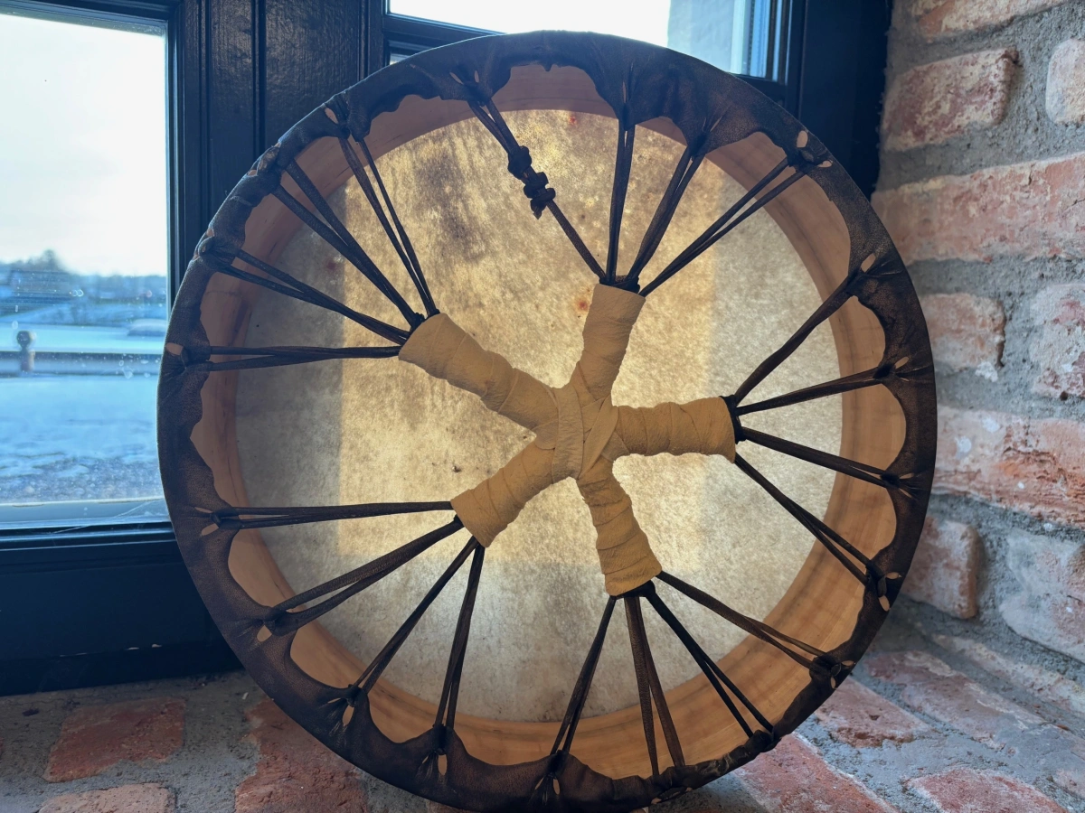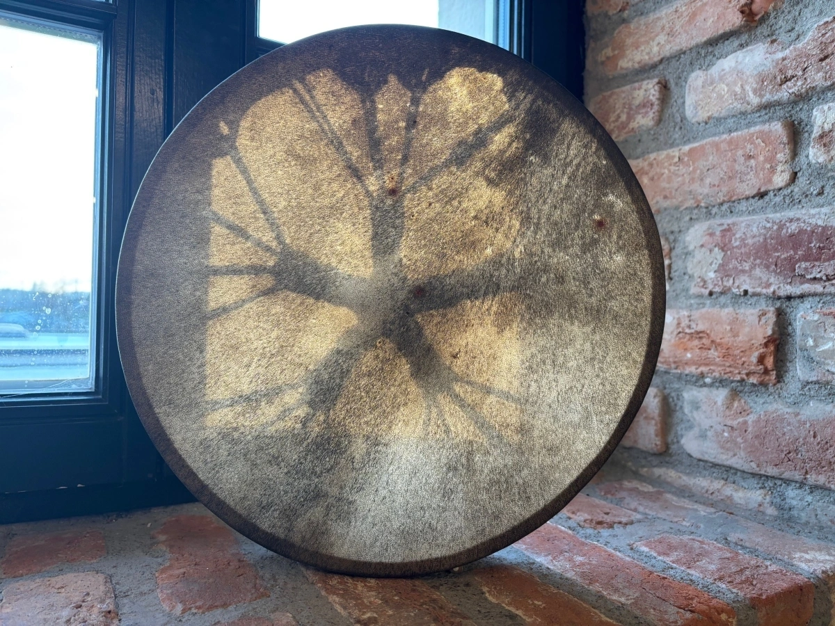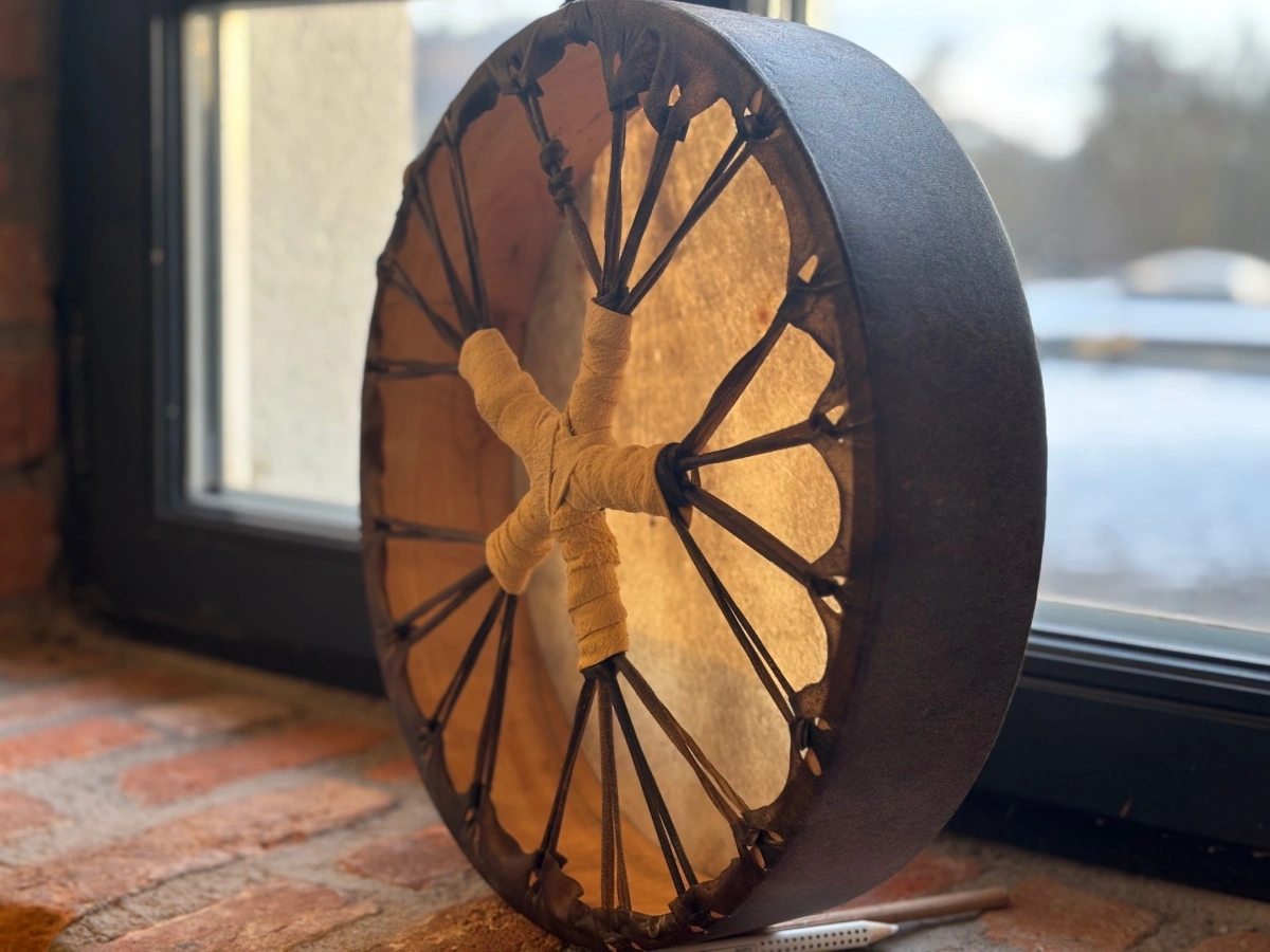 Gebaut am 28. Dezember 2025 in der Frauenwerkstatt von Raven Spirit ist diese Trommel mehr als ein Instrument. Sie ist ein Gefäss für Klang, Gebet und innere Reisen. In liebevoller Handarbeit gefertigt, trägt sie die Energie der Frauen, die sie erschaffen haben, und die Achtsamkeit, mit der jedes Detail vollendet wurde.
