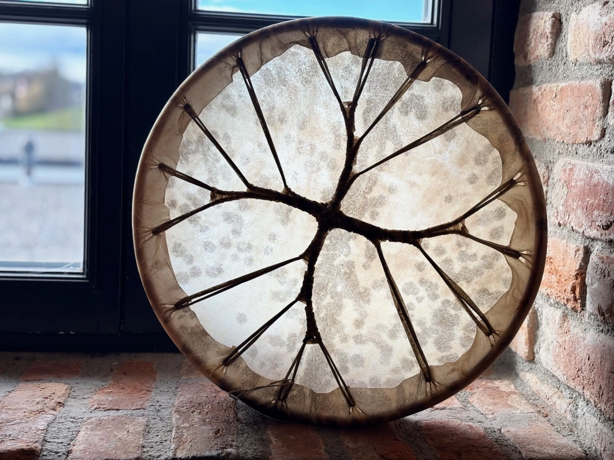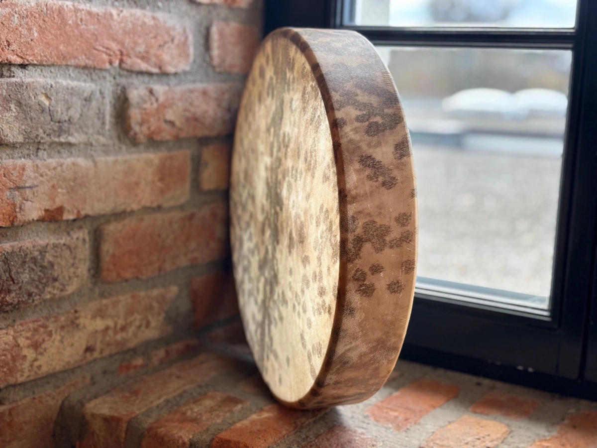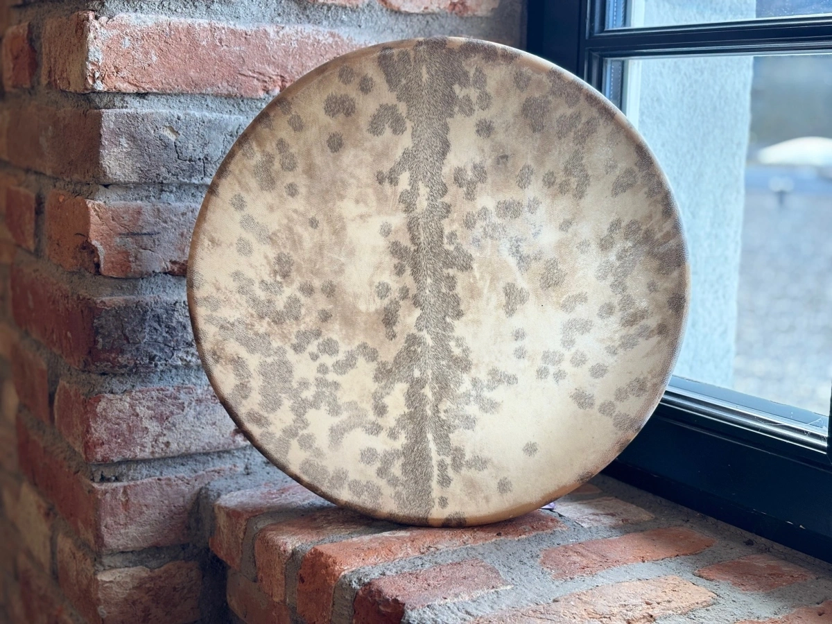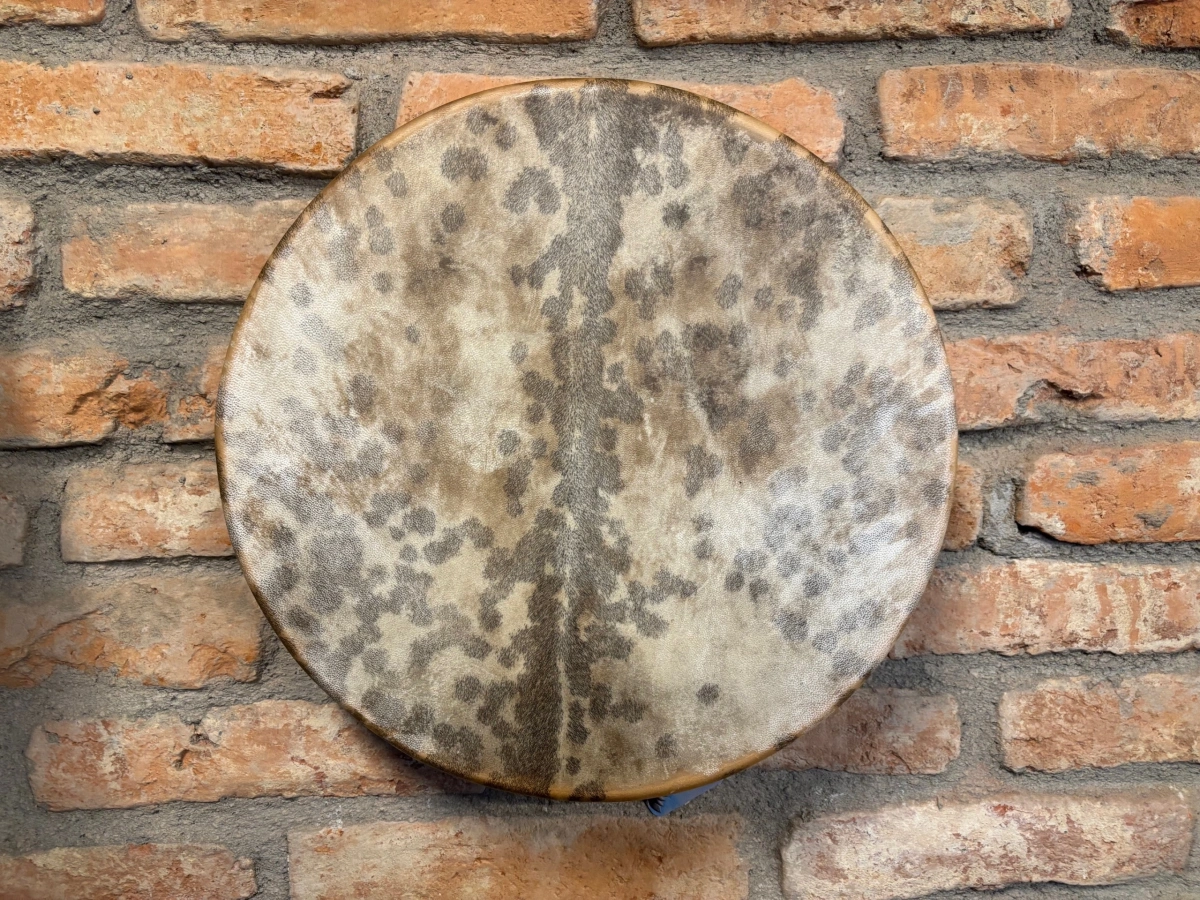 Gepunktete Schamanentrommel aus Ziegenhaut – ein lebendiger Klangkreis