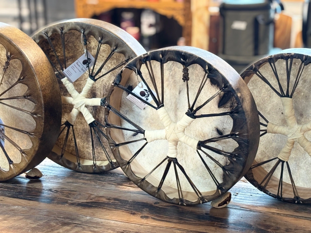 In der schamanischen Tradition verkörpert die Trommel das weibliche Prinzip. Sie empfängt, nährt und verbindet. Ihr Rhythmus erinnert an den Herzschlag der Erde, öffnet Räume für Intuition und innere Bilder und lädt Dich ein, innezuhalten und zu lauschen. In Deinen Händen wird sie zu einer kraftvollen Begleiterin für achtsame Wege und persönliche Klangarbeit.