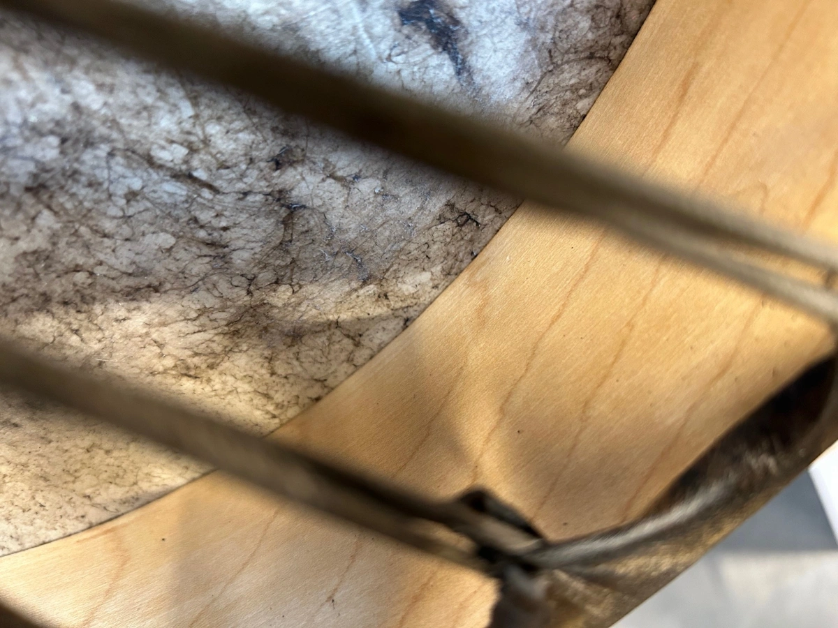 Schamanen Trommel aus Hirschhaut und Alaska-Zeder-Rahmen | Gewicht: 586 g | Randtiefe: xx cm – entstanden einen Tag nach Vollmond
