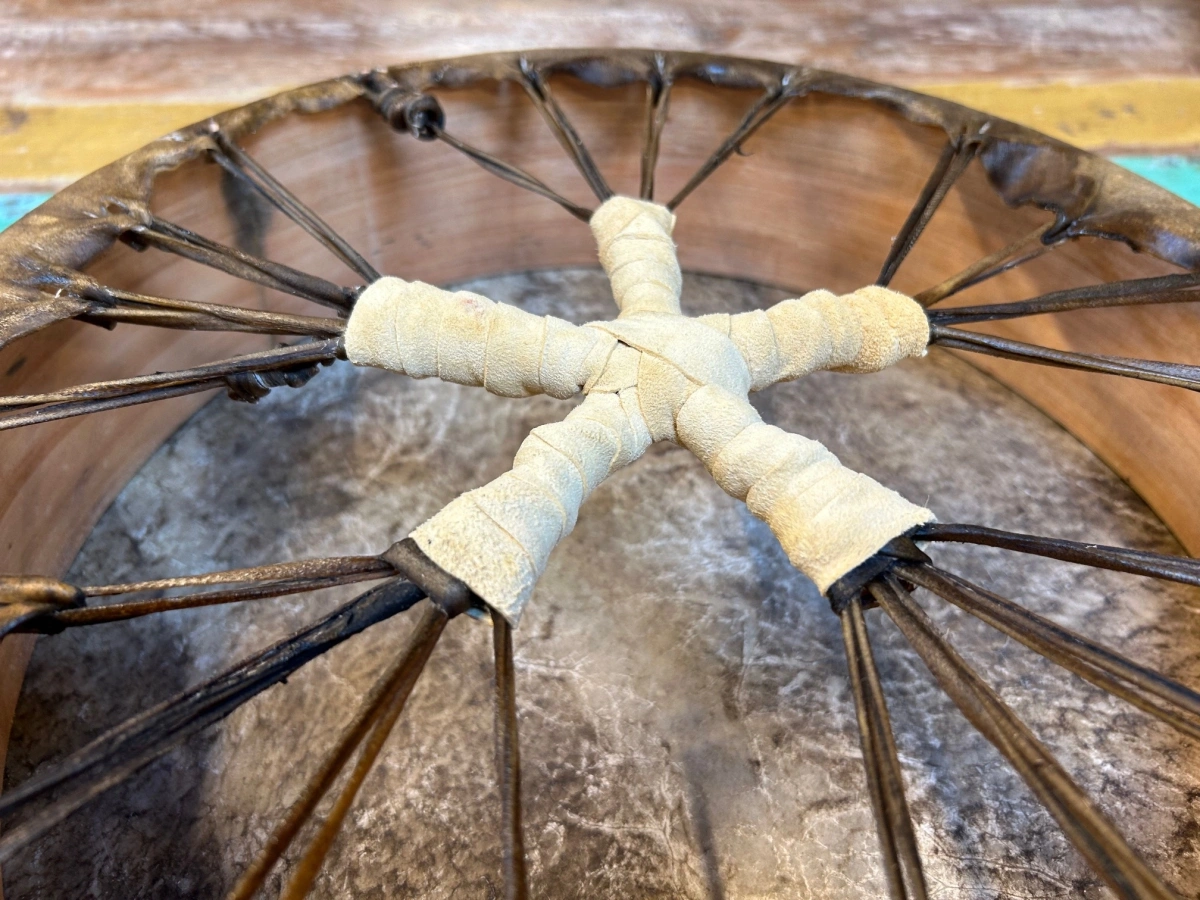Schamanen Trommel aus Hirschhaut und Weide-Rahmen | Gewicht: xx g | Randtiefe: 8 cm – entstanden am Frauen Trommel Bauritual