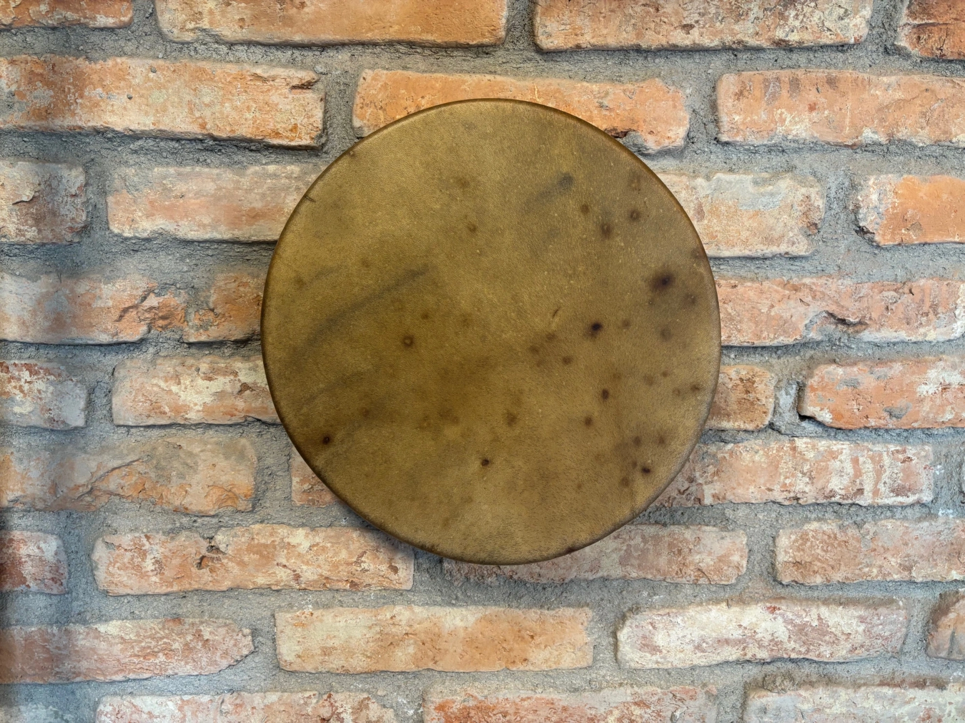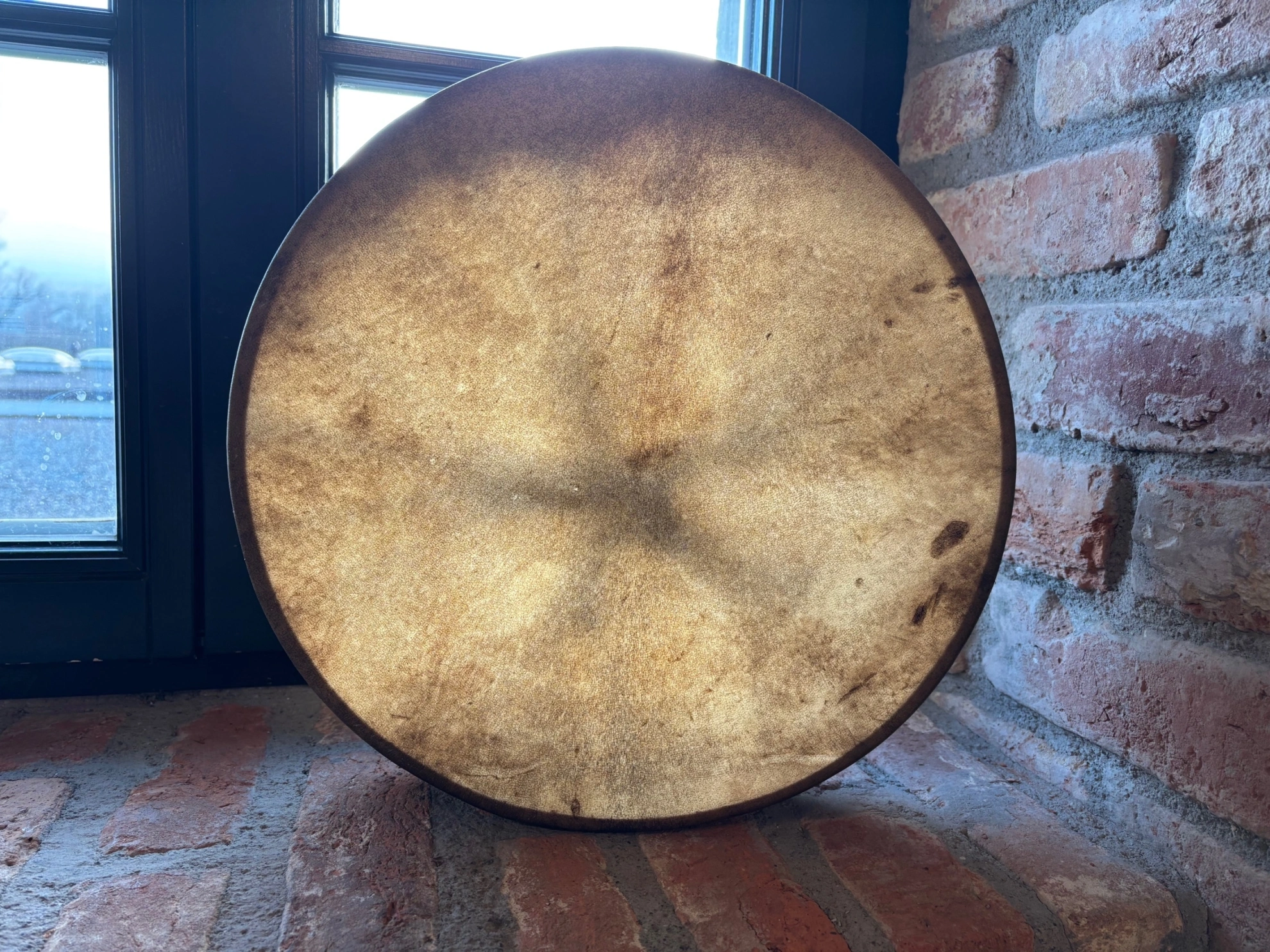 Die natürlich behandelte Rothirschhaut entfaltet eine warme, erdverbundene Klangqualität. Durch die kompaktere Grösse entsteht ein klarer Ton mit schneller Ansprache, der sich von sanft und fein bis kraftvoll und tragend entwickeln kann. Sie eignet sich besonders für Rituale, Meditation, Klangreisen und schamanische Arbeit.