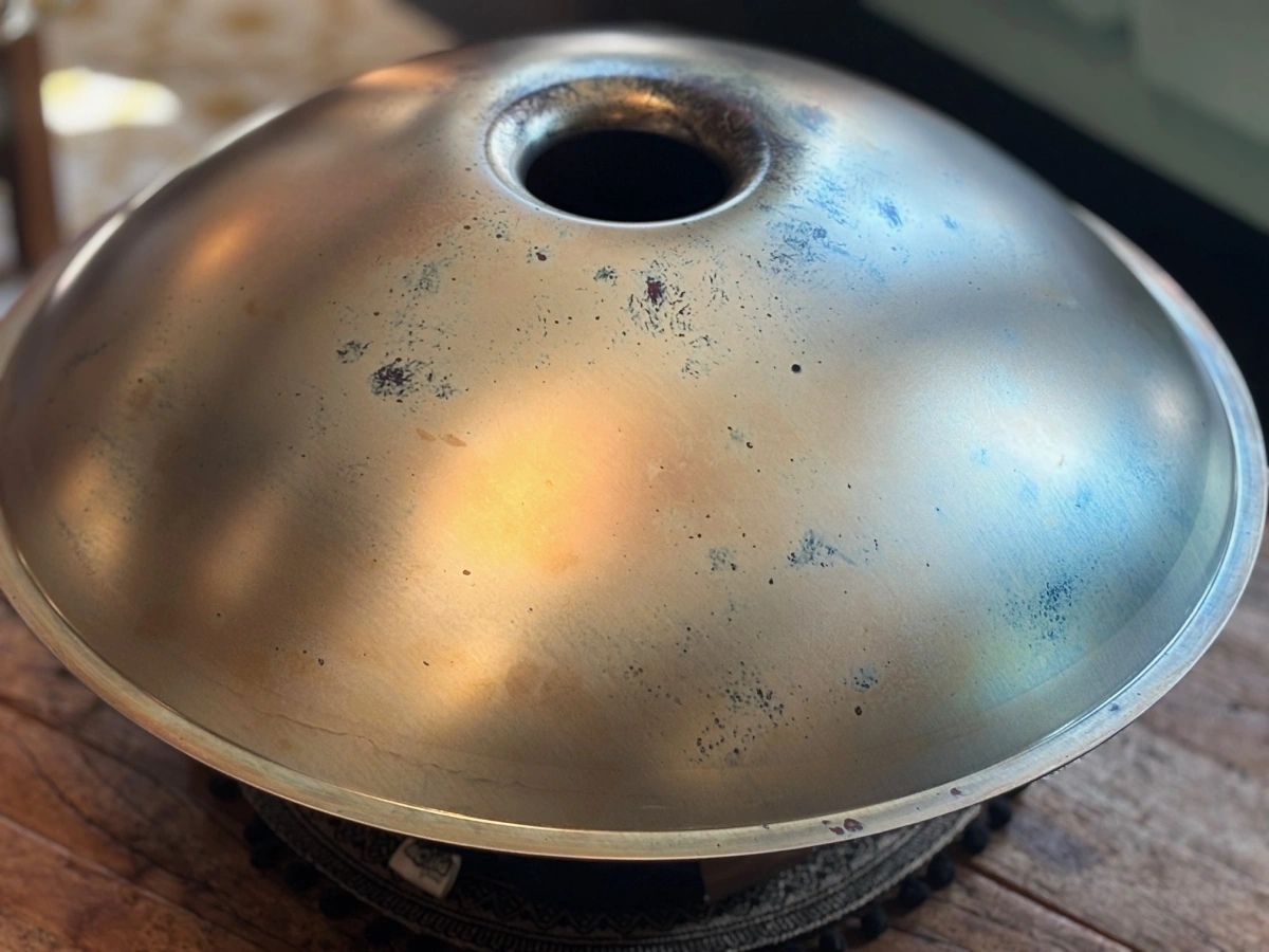 Gefertigt aus Ember Steel, zeichnen sich ShaktiPans durch eine warme, lang anhaltende Klangschwingung und einen weichen, sensiblen Anschlag aus – ideal für meditative, achtsame Spielweise. Das hochwertige Edelstahlmaterial ist nicht nur rostfrei und pflegeleicht, sondern auch besonders stimmstabil. Ember Steel verleiht dem Klang eine Tiefe und Klarheit, die berührt und nachklingt. Gleichzeitig reagiert die Oberfläche sehr feinfühlig auf sanfte Berührungen – perfekt für ruhige, ausdrucksstarke Klangreisen. Jede ShaktiPan wird mit grösster Sorgfalt von Hand geformt und gestimmt – so entsteht ein echtes Unikat mit eigenem Charakter und Seele.