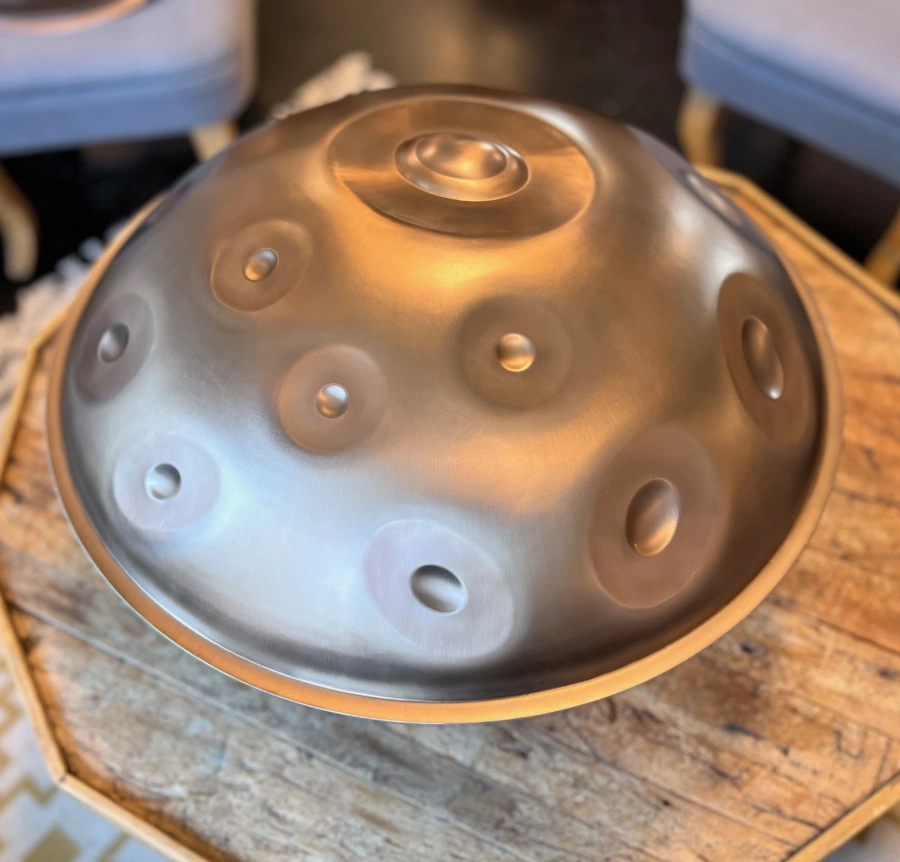 Die Handpans von MAG Instruments aus Ungarn zeichnen sich durch ihre edle Oberfläche, warme Klangfarben und eine besonders lange Schwingung (Sustain) aus. Gefertigt aus rostbeständigem Edelstahl (Stainless Steel) entstehen Instrumente mit klarer, tragender Klangfülle, die sich besonders für meditatives und gefühlvolles Spiel eignen. Der Ton entfaltet sich weich und anhaltend und gibt dem Klang viel Raum zur Entfaltung.