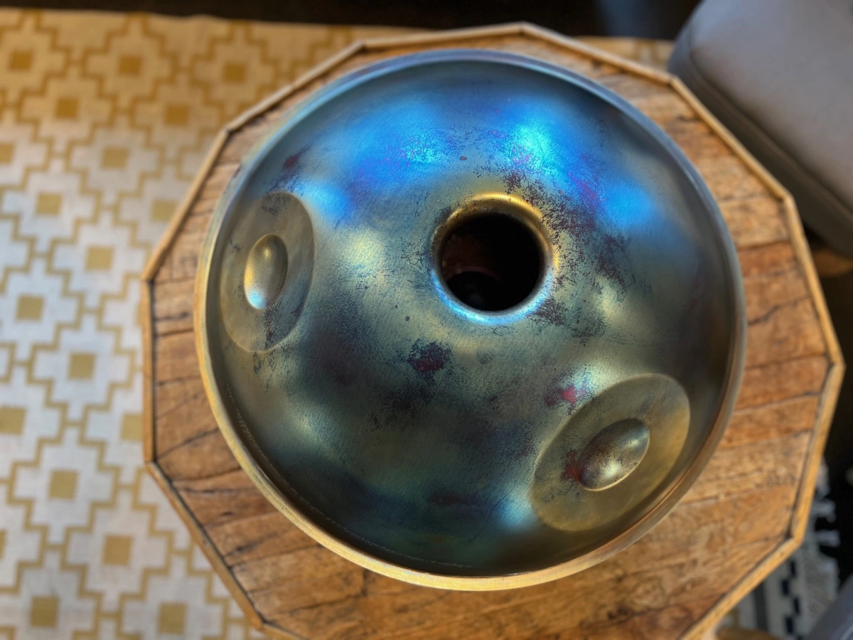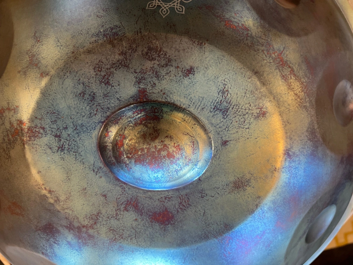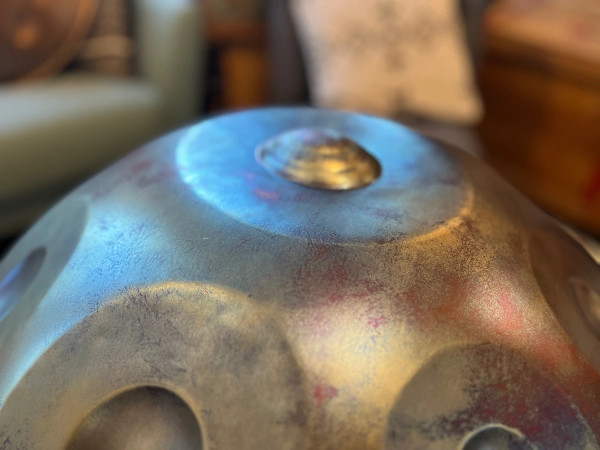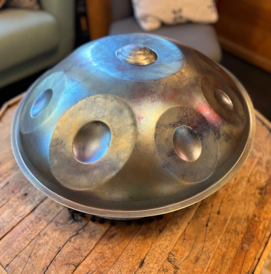 Gefertigt aus Ember Steel, überzeugt die ShaktiPan durch eine warme, lange tragende Schwingung und einen besonders weichen, sensiblen Anschlag. Dieses hochwertige Edelstahlmaterial ist rostfrei, pflegeleicht und aussergewöhnlich stimmstabil. Gleichzeitig reagiert die Oberfläche fein auf sanfte Berührungen und macht die ShaktiPan ideal für ruhiges, ausdrucksstarkes Spiel. Jede ShaktiPan wird in sorgfältiger Handarbeit geformt und gestimmt. So entsteht ein echtes Unikat mit eigenem Charakter und Seele.