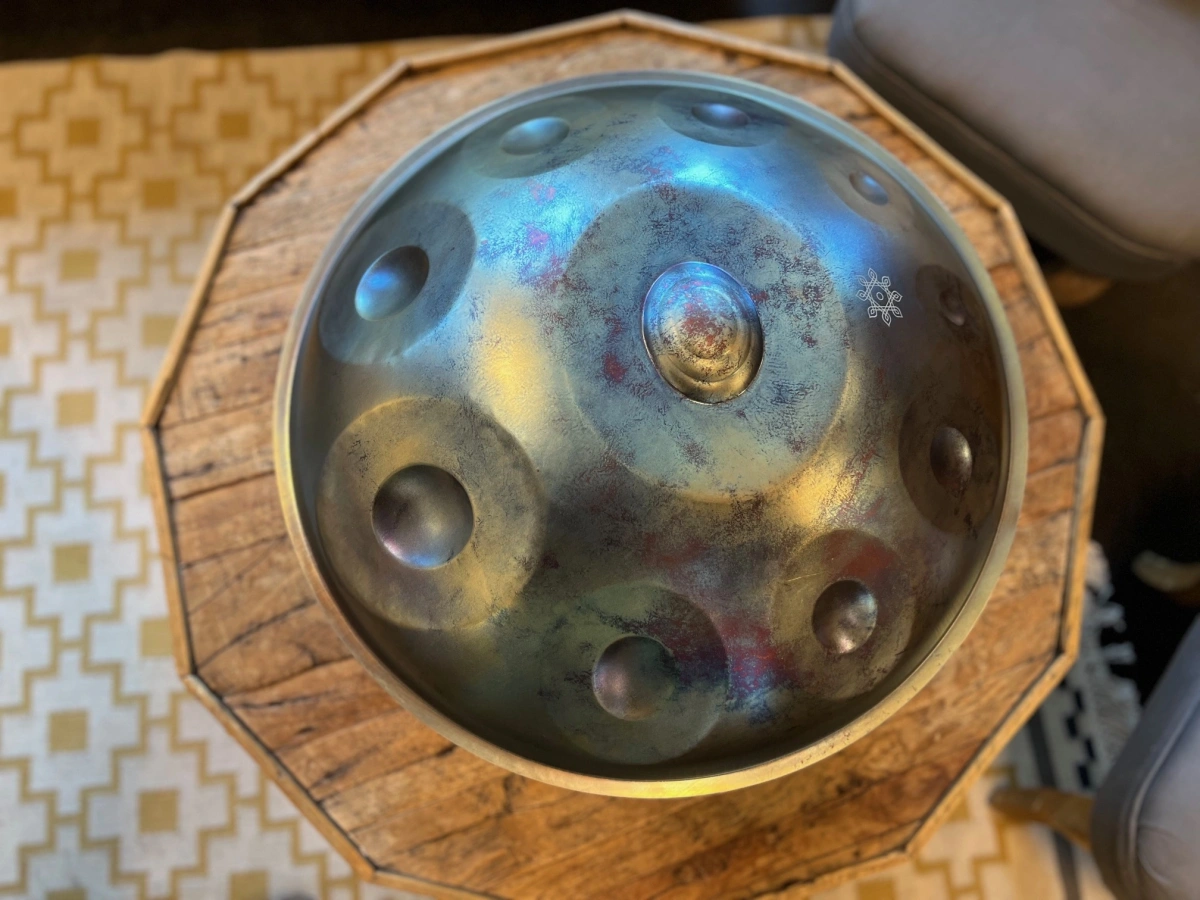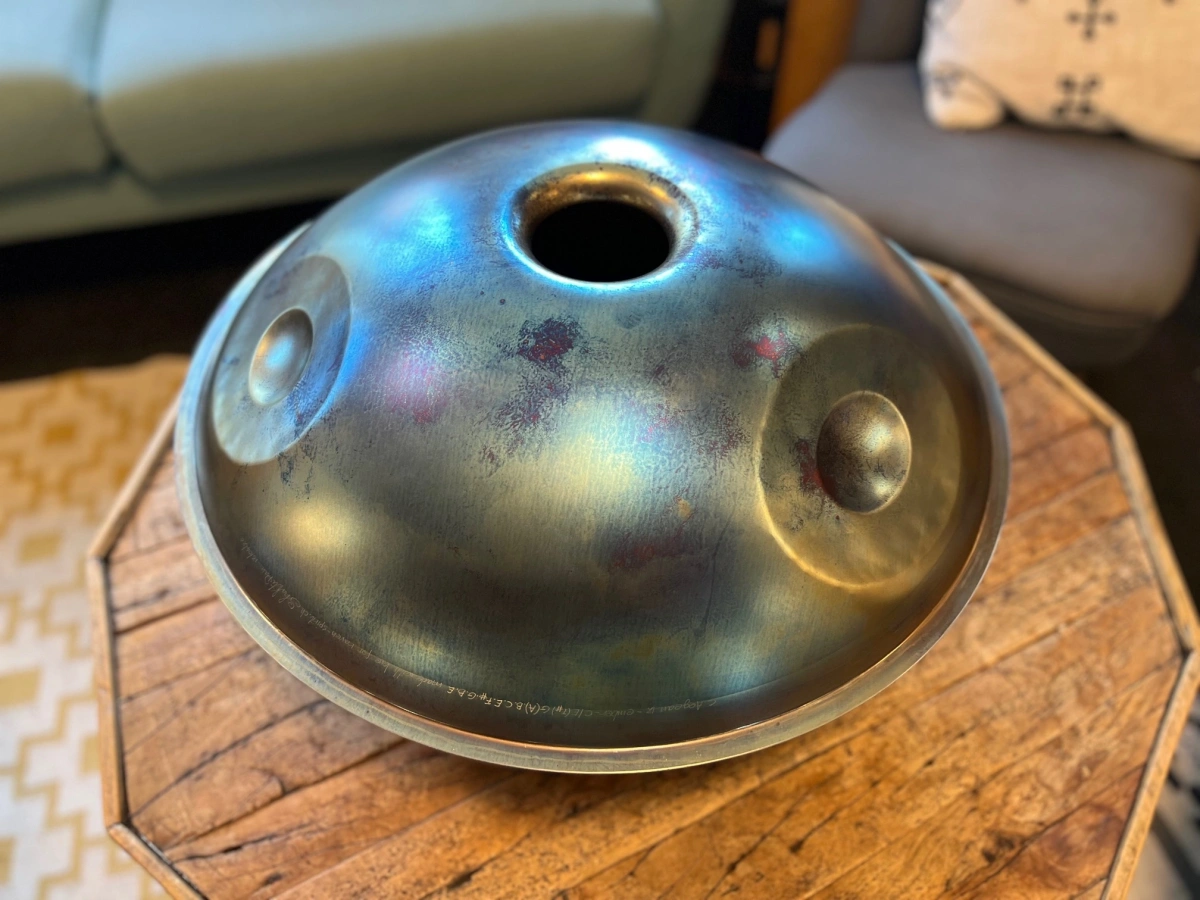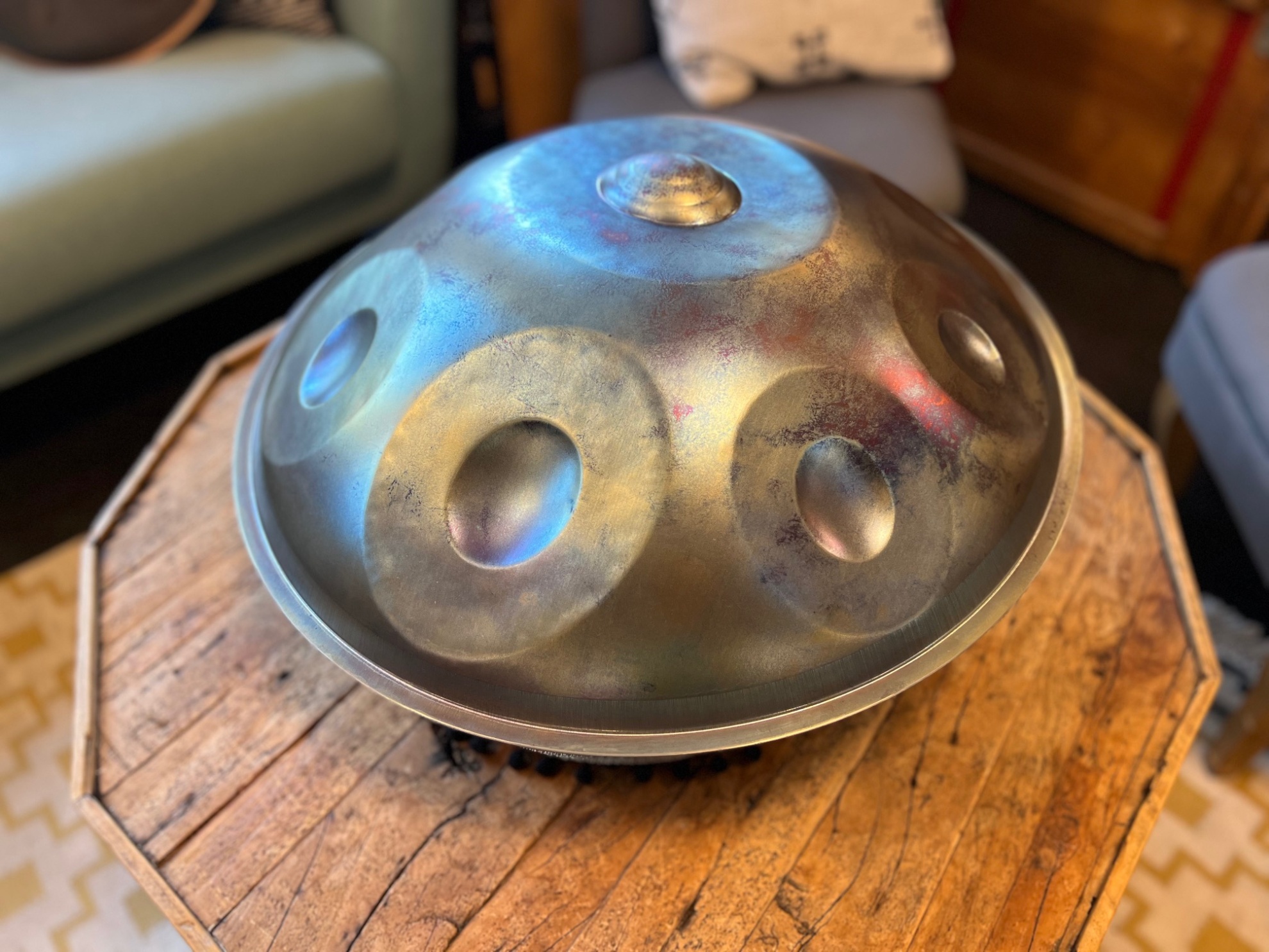 Gefertigt aus Ember Steel, überzeugt die ShaktiPan durch eine warme, lange tragende Schwingung und einen besonders weichen, sensiblen Anschlag. Dieses hochwertige Edelstahlmaterial ist rostfrei, pflegeleicht und aussergewöhnlich stimmstabil. Gleichzeitig reagiert die Oberfläche fein auf sanfte Berührungen und macht die ShaktiPan ideal für ruhiges, ausdrucksstarkes Spiel. Jede ShaktiPan wird in sorgfältiger Handarbeit geformt und gestimmt. So entsteht ein echtes Unikat mit eigenem Charakter und Seele.