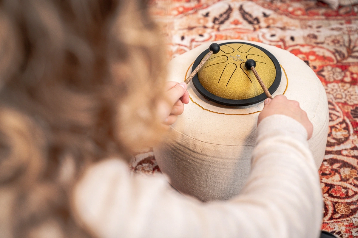Es gibt keine falschen Töne – nur sanfte, beruhigende Klänge, die an eine kleine Steel Pan Drum erinnern und im Handumdrehen eine friedliche Atmosphäre schaffen.