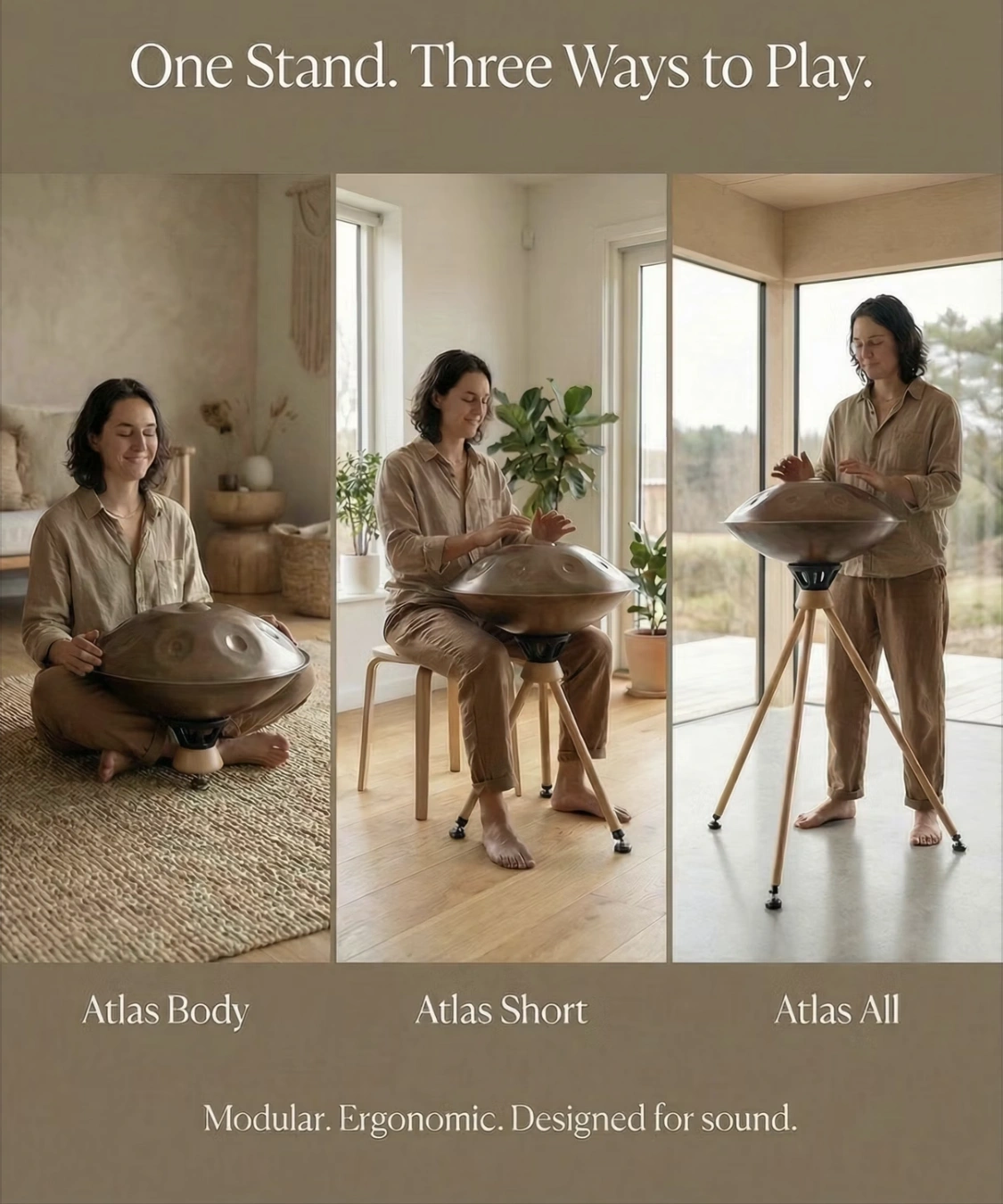Atlas ist der Handpan-Ständer, der Klangfreiheit, Stabilität und elegantes Design in einem innovativen System vereint.