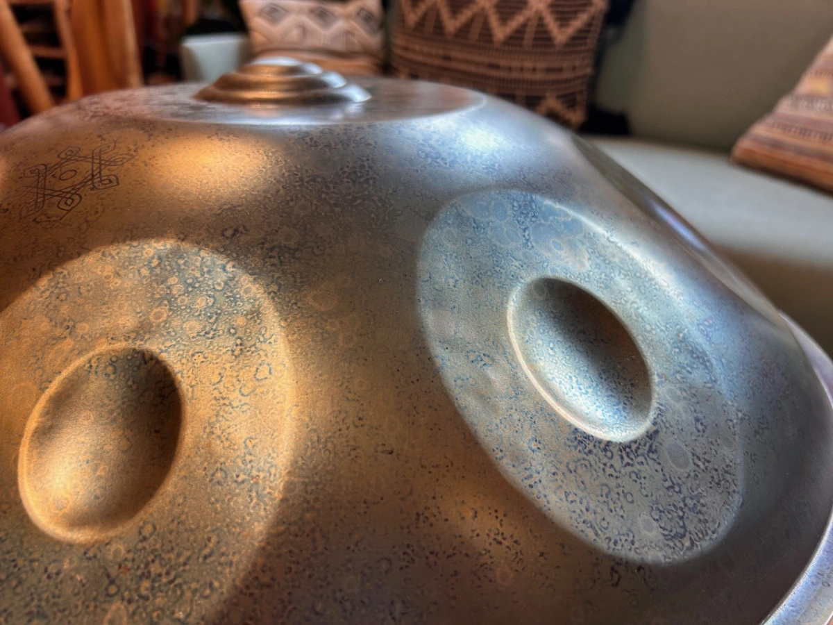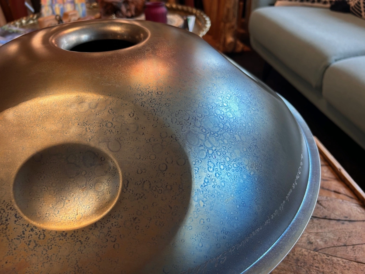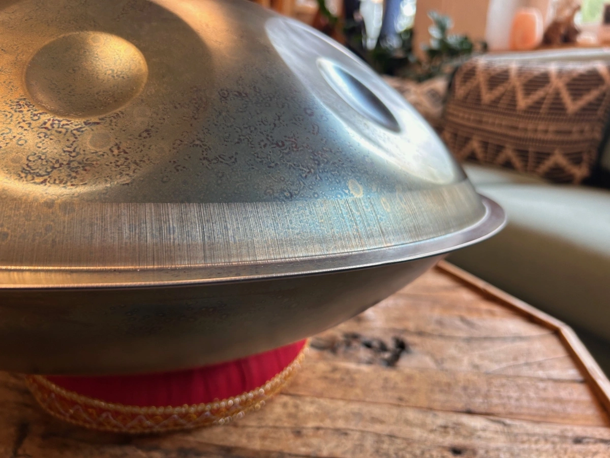 Gefertigt aus Ember Steel, zeichnen sich ShaktiPans durch eine warme, lang anhaltende Klangschwingung und einen weichen, sensiblen Anschlag aus – ideal für meditative, achtsame Spielweise. Das hochwertige Edelstahlmaterial ist nicht nur rostfrei und pflegeleicht, sondern auch besonders stimmstabil. Ember Steel verleiht dem Klang eine Tiefe und Klarheit, die berührt und nachklingt. Gleichzeitig reagiert die Oberfläche sehr feinfühlig auf sanfte Berührungen – perfekt für ruhige, ausdrucksstarke Klangreisen. Jede ShaktiPan wird mit grösster Sorgfalt von Hand geformt und gestimmt – so entsteht ein echtes Unikat mit eigenem Charakter und Seele.
