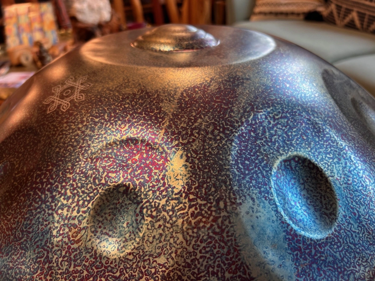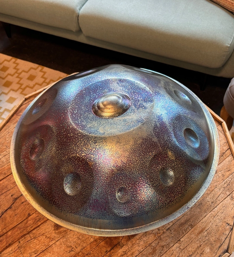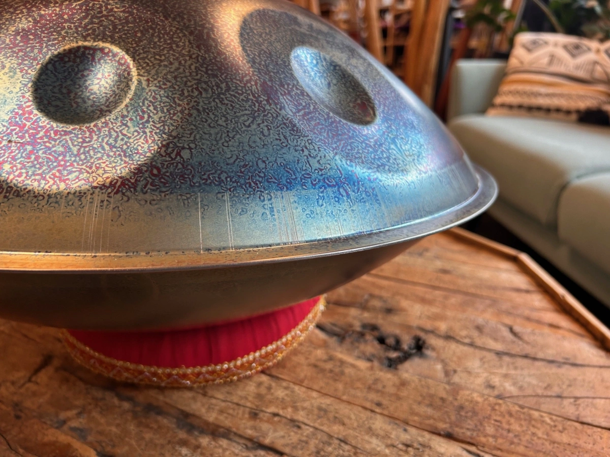 Gefertigt aus Ember Steel, zeichnen sich ShaktiPans durch eine warme, lang anhaltende Klangschwingung und einen weichen, sensiblen Anschlag aus – ideal für meditative, achtsame Spielweise. Das hochwertige Edelstahlmaterial ist nicht nur rostfrei und pflegeleicht, sondern auch besonders stimmstabil. Ember Steel verleiht dem Klang eine Tiefe und Klarheit, die berührt und nachklingt. Gleichzeitig reagiert die Oberfläche sehr feinfühlig auf sanfte Berührungen – perfekt für ruhige, ausdrucksstarke Klangreisen. Jede ShaktiPan wird mit grösster Sorgfalt von Hand geformt und gestimmt – so entsteht ein echtes Unikat mit eigenem Charakter und Seele.