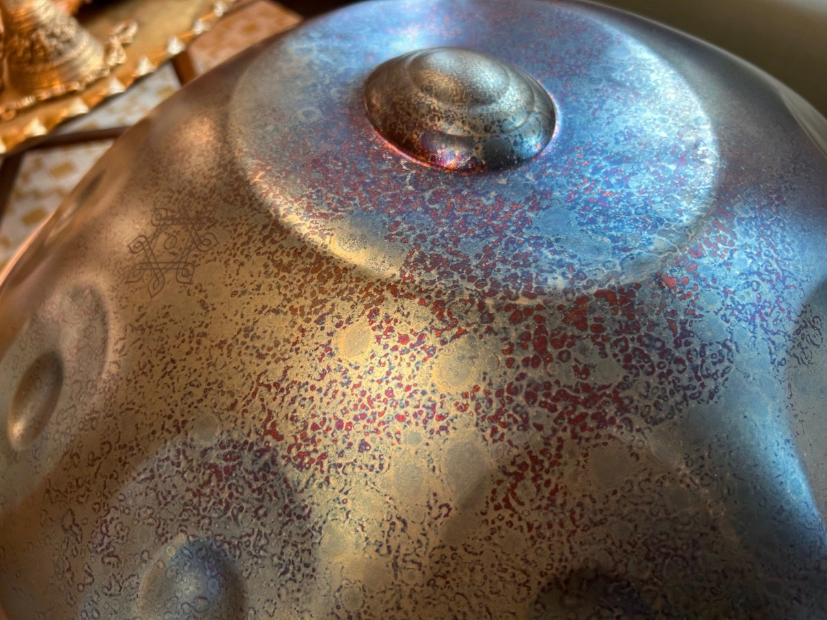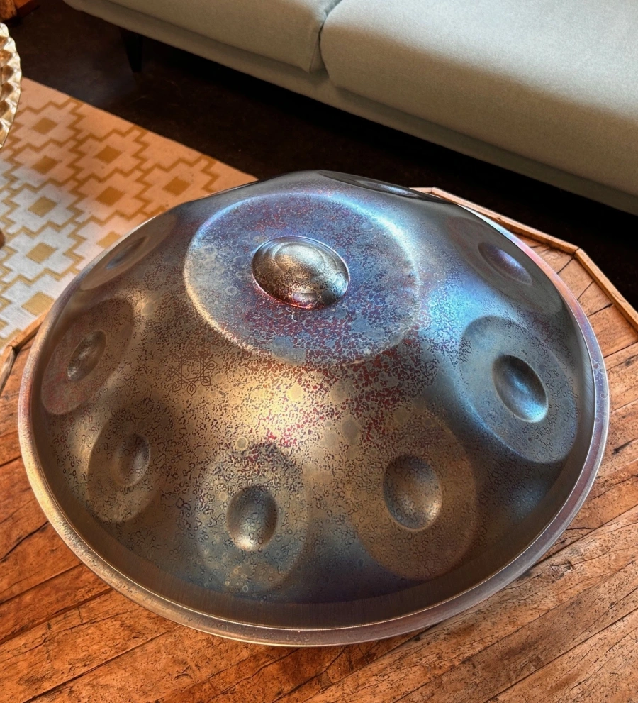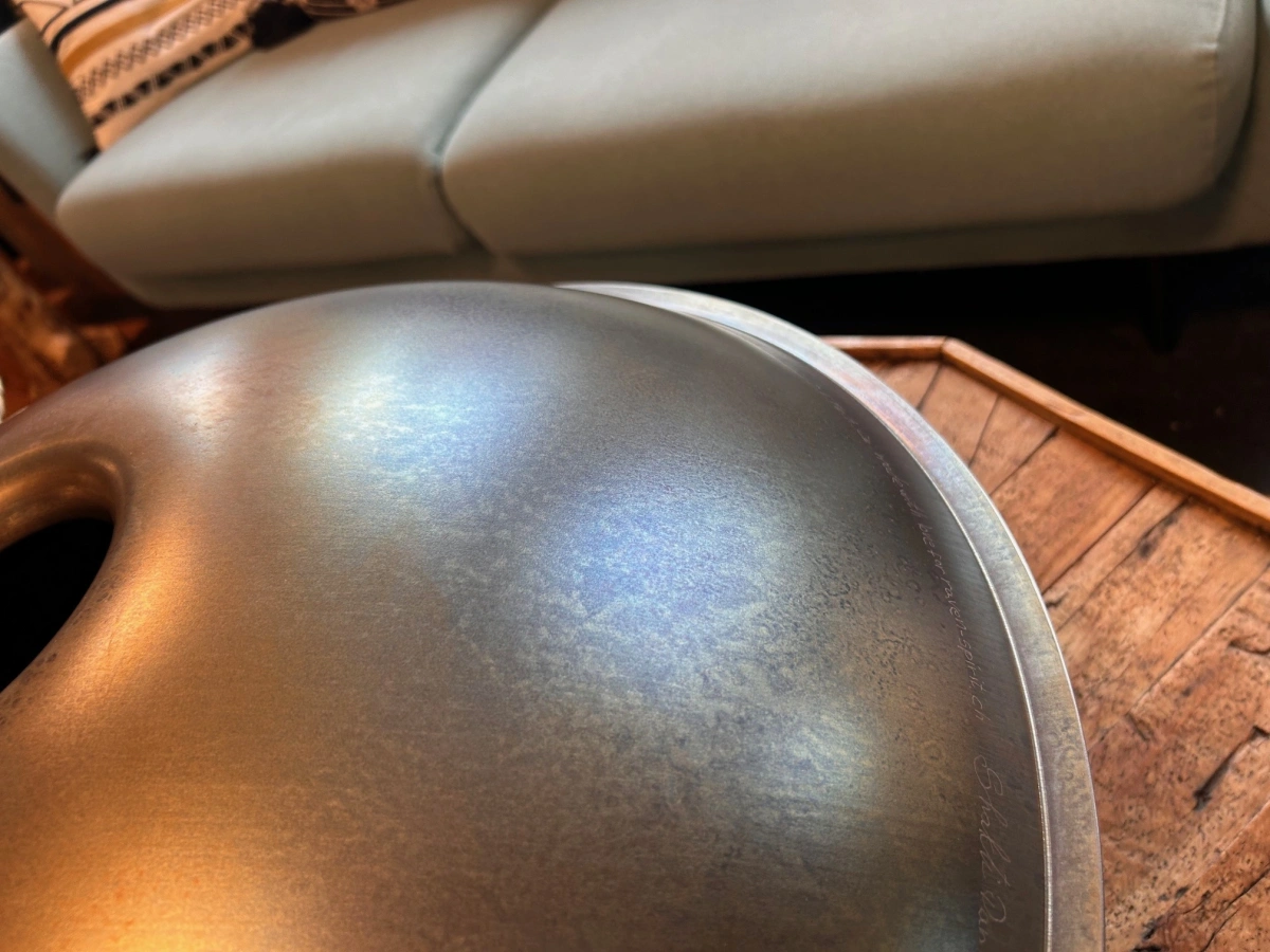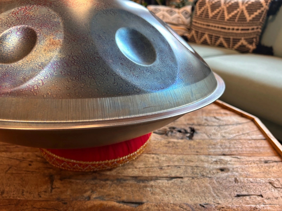 Gefertigt aus Ember Steel, zeichnen sich ShaktiPans durch eine warme, lang anhaltende Klangschwingung und einen weichen, sensiblen Anschlag aus – ideal für meditative, achtsame Spielweise. Das hochwertige Edelstahlmaterial ist nicht nur rostfrei und pflegeleicht, sondern auch besonders stimmstabil. Ember Steel verleiht dem Klang eine Tiefe und Klarheit, die berührt und nachklingt. Gleichzeitig reagiert die Oberfläche sehr feinfühlig auf sanfte Berührungen – perfekt für ruhige, ausdrucksstarke Klangreisen. Jede ShaktiPan wird mit grösster Sorgfalt von Hand geformt und gestimmt – so entsteht ein echtes Unikat mit eigenem Charakter und Seele.