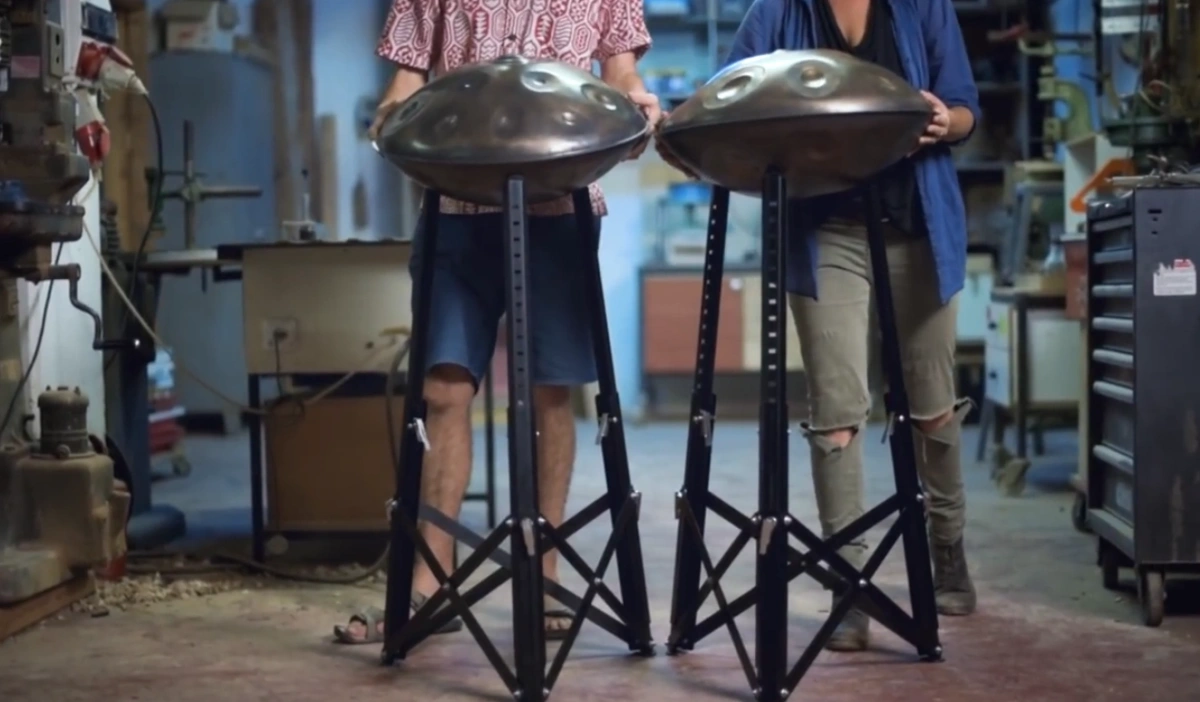 Leichter, faltbarer Handpan-Ständer aus Alu und Stahl – höhenverstellbar, stabil und reisefreundlich. Passend für alle Handpans, auch mit Untertonfeldern. In Silber, Schwarz oder Holzoptik erhältlich.