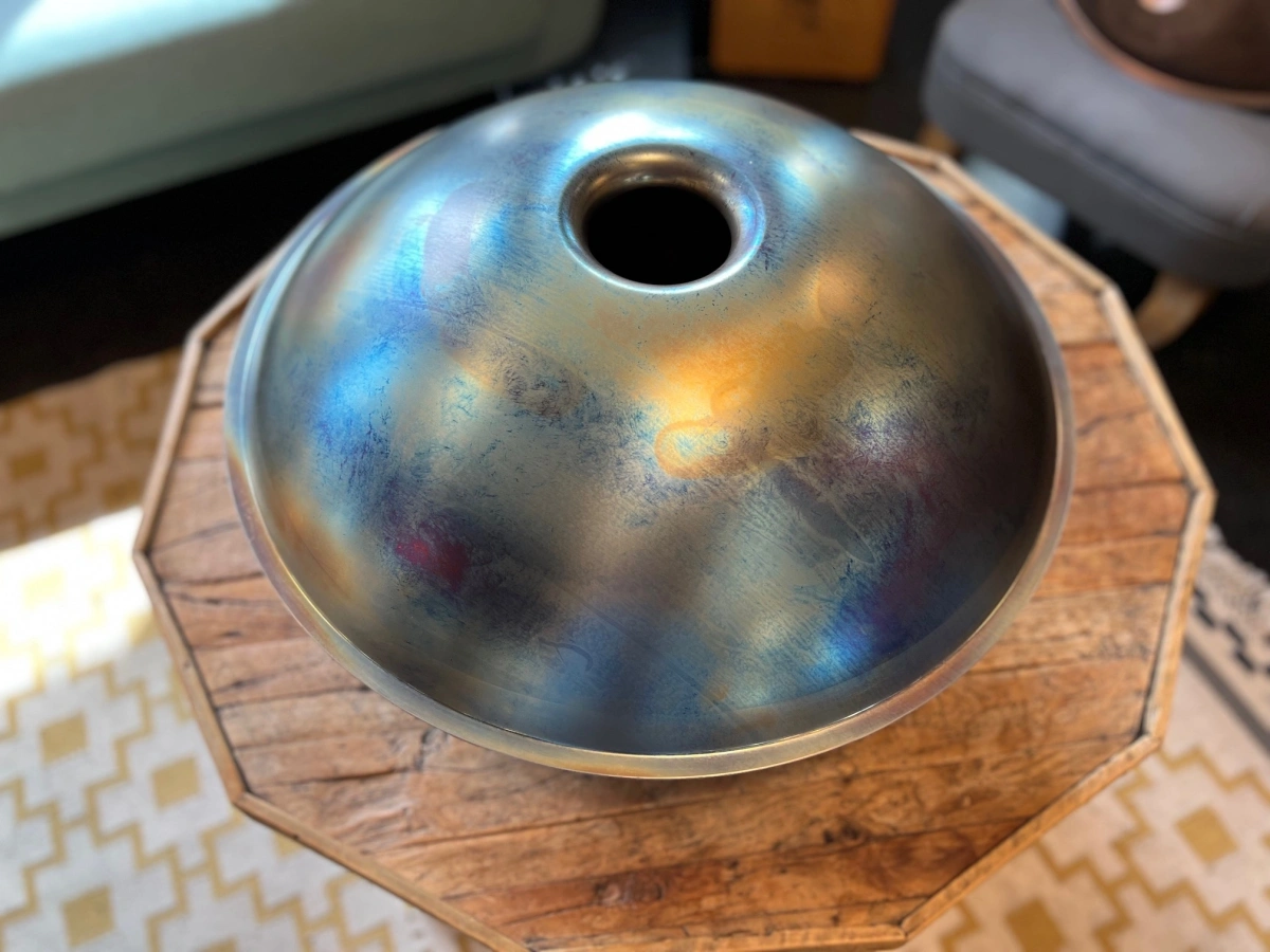 Gefertigt aus Ember Steel, überzeugt die ShaktiPan durch eine warme, lange tragende Schwingung und einen besonders weichen, sensiblen Anschlag. Dieses hochwertige Edelstahlmaterial ist rostfrei, pflegeleicht und aussergewöhnlich stimmstabil. Gleichzeitig reagiert die Oberfläche fein auf sanfte Berührungen und macht die ShaktiPan ideal für ruhiges, ausdrucksstarkes Spiel. Jede ShaktiPan wird in sorgfältiger Handarbeit geformt und gestimmt. So entsteht ein echtes Unikat mit eigenem Charakter und Seele.