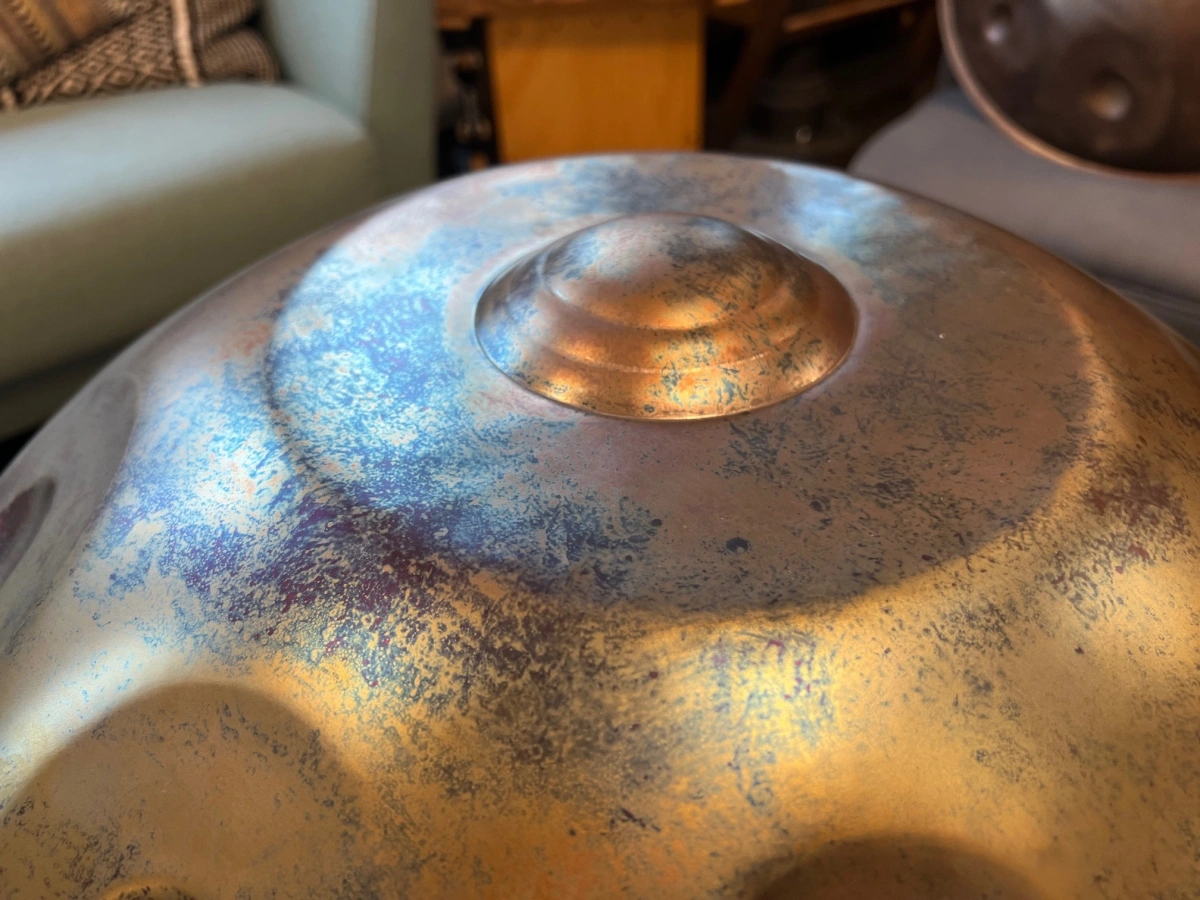 Gefertigt aus Ember Steel, zeichnen sich ShaktiPans durch eine warme, lang anhaltende Klangschwingung und einen weichen, sensiblen Anschlag aus – ideal für meditative, achtsame Spielweise. Das hochwertige Edelstahlmaterial ist nicht nur rostfrei und pflegeleicht, sondern auch besonders stimmstabil. Ember Steel verleiht dem Klang eine Tiefe und Klarheit, die berührt und nachklingt. Gleichzeitig reagiert die Oberfläche sehr feinfühlig auf sanfte Berührungen – perfekt für ruhige, ausdrucksstarke Klangreisen. Jede ShaktiPan wird mit grösster Sorgfalt von Hand geformt und gestimmt – so entsteht ein echtes Unikat mit eigenem Charakter und Seele.