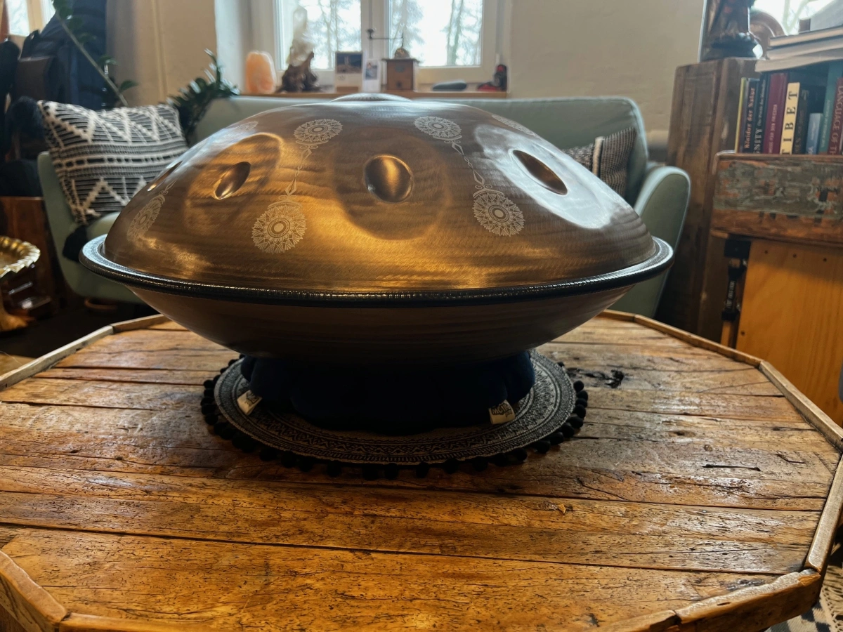 Im Spiel zeigt sich die Handpan warm, klar und lebendig, mit angenehmer Dynamik und leichter Ansprache. Sie lädt ein, loszulassen, dem Klang Raum zu geben und Musik als Meditation zu erleben – ein Instrument, das Körper, Geist und Herz verbindet.