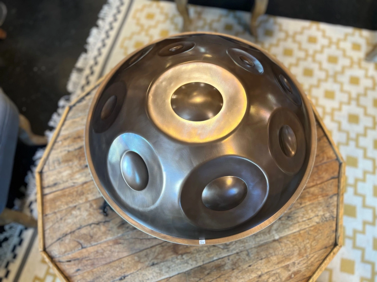 Erlebe den warmen, fliessenden Klang dieser handgefertigten Edelstahl-Handpan – ideal für erzählerisches Spiel, ruhige Grooves und meditative Klangreisen.
