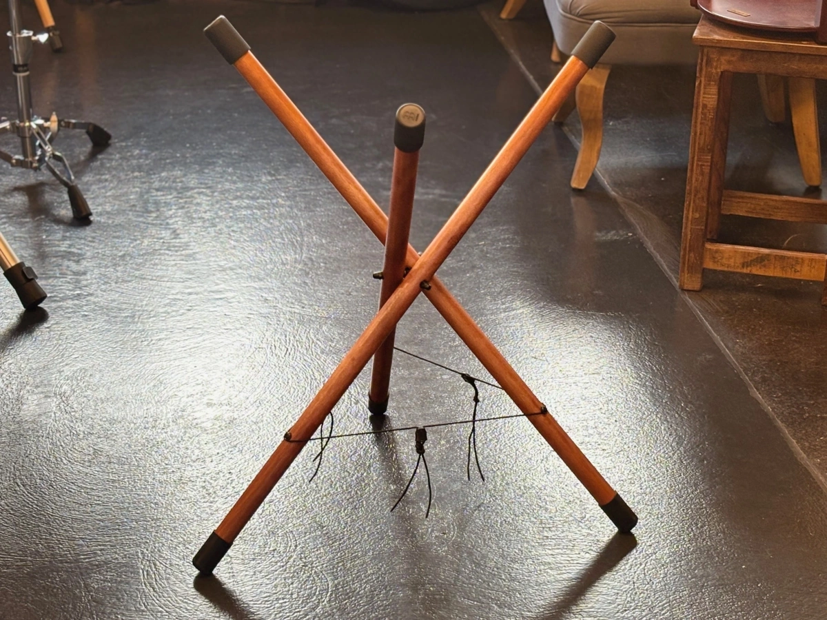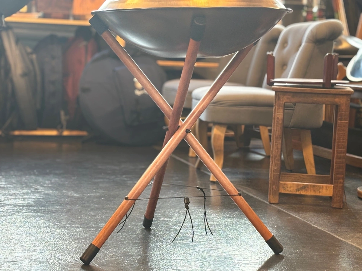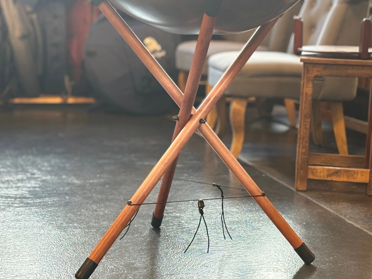 Dieser faltbare Holzständer bietet Deiner Handpan oder Tongue Drum einen sicheren und geschützten Platz. Drei stabile Beine, rutschfeste Silikonfüsse und gepolsterte Auflagen sorgen für Halt und Stabilität.Dank der verstellbaren Auflage passt sich der Ständer flexibel an Dein Instrument an. Leicht zu transportieren und schnell aufgebaut, begleitet er Dich zuverlässig in Deinen persönlichen Klangmomenten oder im Klangbad.