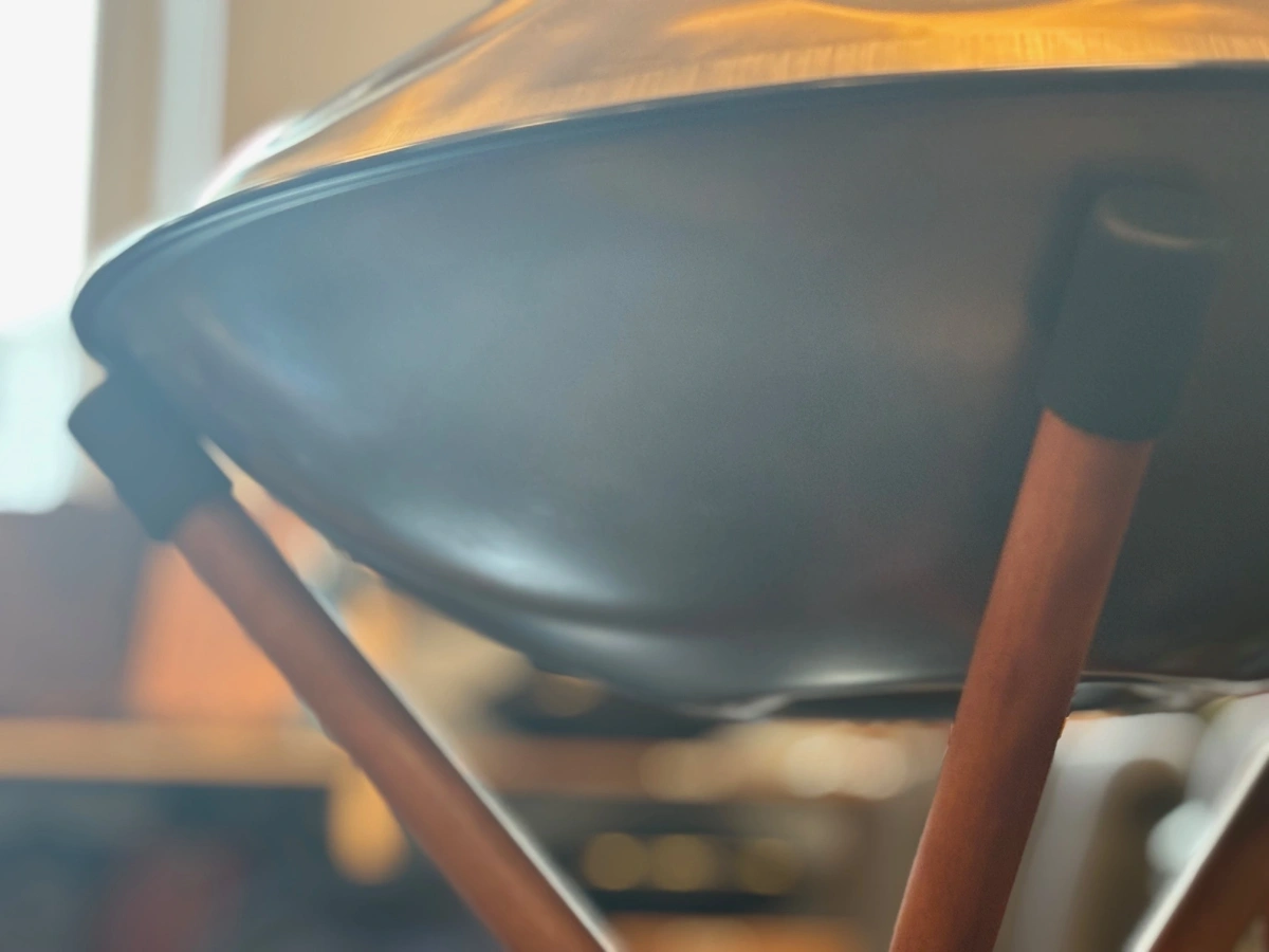 Dieser fein gearbeitete Ständer aus Holz trägt Deine Handpan wie eine ruhige, verlässliche Basis. Drei stabile Beine schenken Dir sicheren Halt, während die sanften Silikonflächen Dein Instrument behutsam umschliessen und schützen.Die warme Ausstrahlung des Ki Bawang Holzes verbindet Natürlichkeit mit Funktionalität. Gleichzeitig bleibt der Ständer leicht und faltbar, sodass Du ihn mühelos zu Deinen Klangreisen, in den Raum der Stille oder zu einem Klangbad mitnehmen kannst.Über eine flexible Zugverstellung passt sich die Auflage individuell Deiner Handpan oder Tongue Drum an. So entsteht ein stabiler, sicherer Platz, auf dem sich Dein Instrument frei entfalten darf.Ob für Deine ganz persönlichen Handpan Momente oder für tiefe, tragende Klangräume im Klangbad – dieser Ständer schafft die Grundlage für Präsenz, Erdung und ein ungestörtes Eintauchen in den Klang.