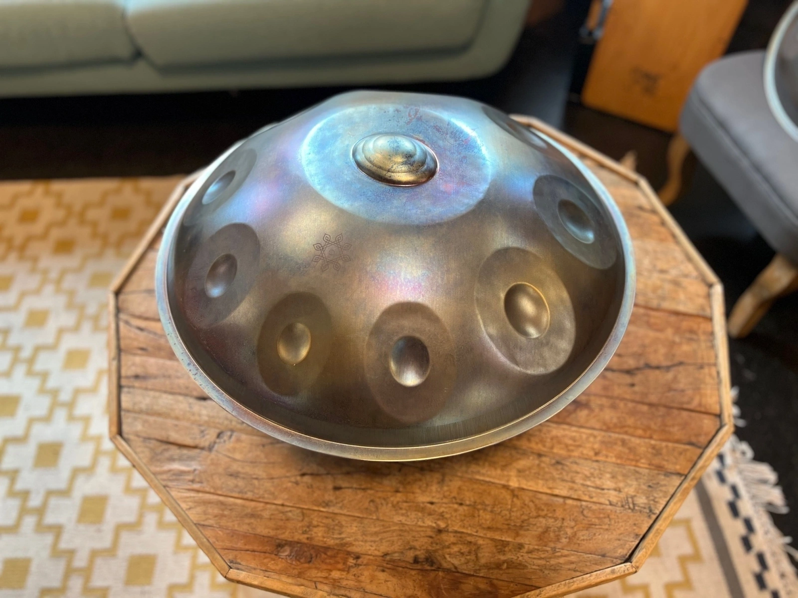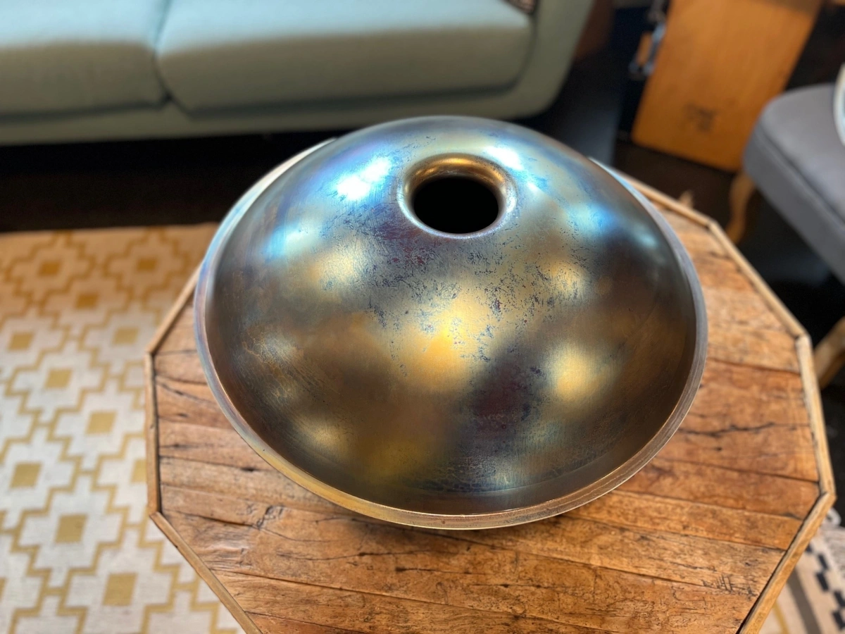 Gefertigt aus Ember Steel, überzeugt die ShaktiPan durch eine warme, lange tragende Schwingung und einen besonders weichen, sensiblen Anschlag. Dieses hochwertige Edelstahlmaterial ist rostfrei, pflegeleicht und aussergewöhnlich stimmstabil. Gleichzeitig reagiert die Oberfläche fein auf sanfte Berührungen und macht die ShaktiPan ideal für ruhiges, ausdrucksstarkes Spiel. Jede ShaktiPan wird in sorgfältiger Handarbeit geformt und gestimmt. So entsteht ein echtes Unikat mit eigenem Charakter und Seele.