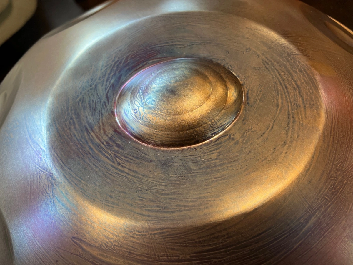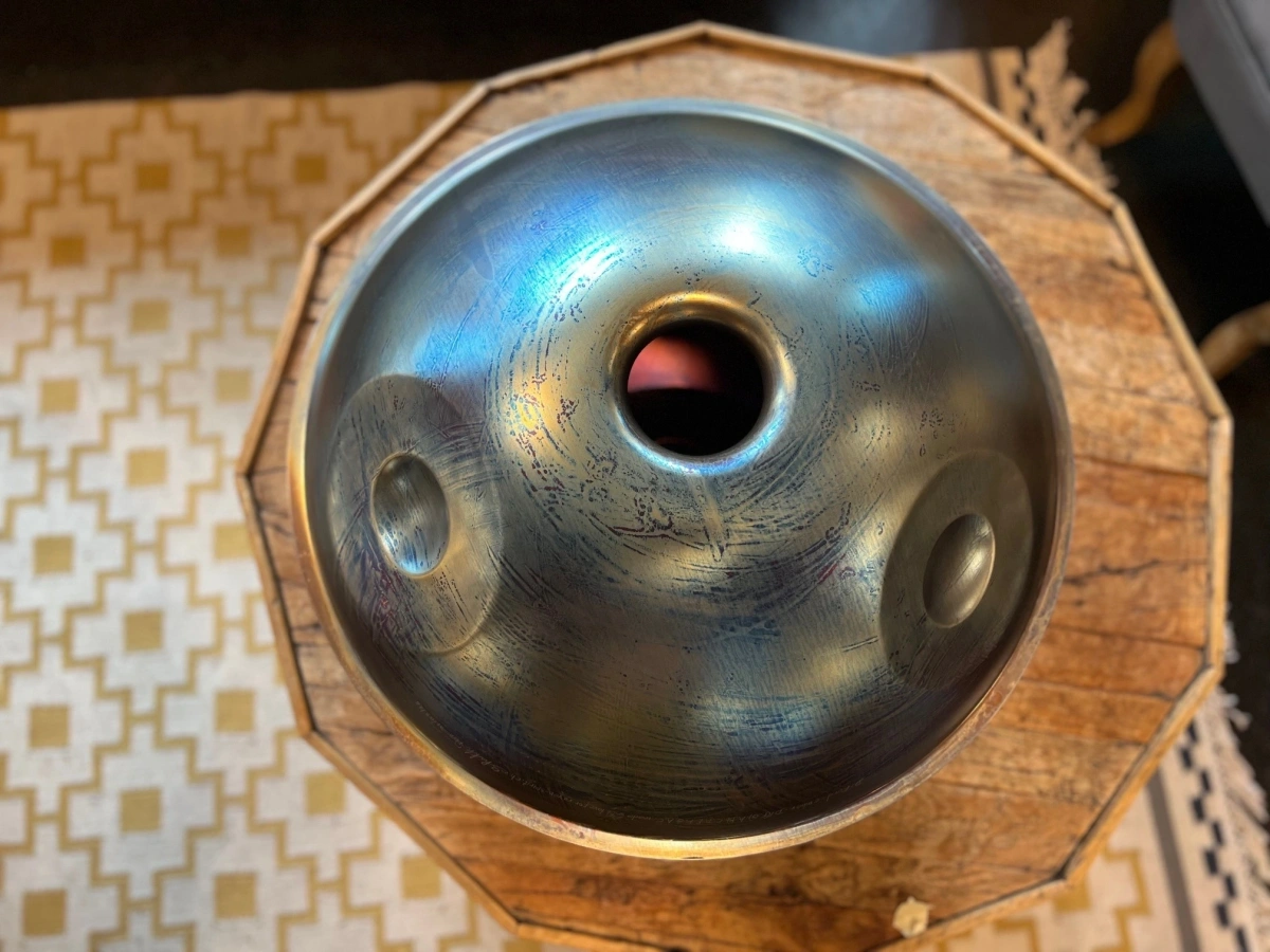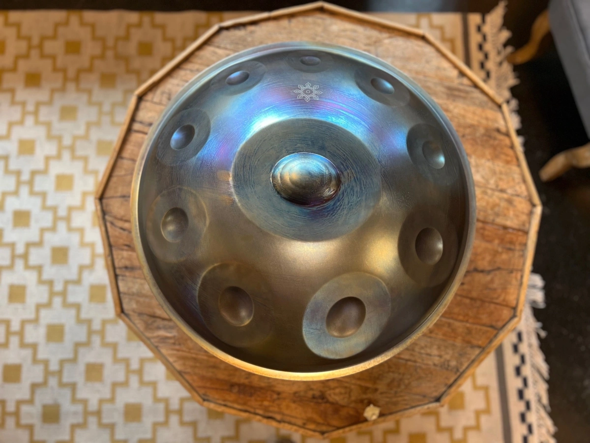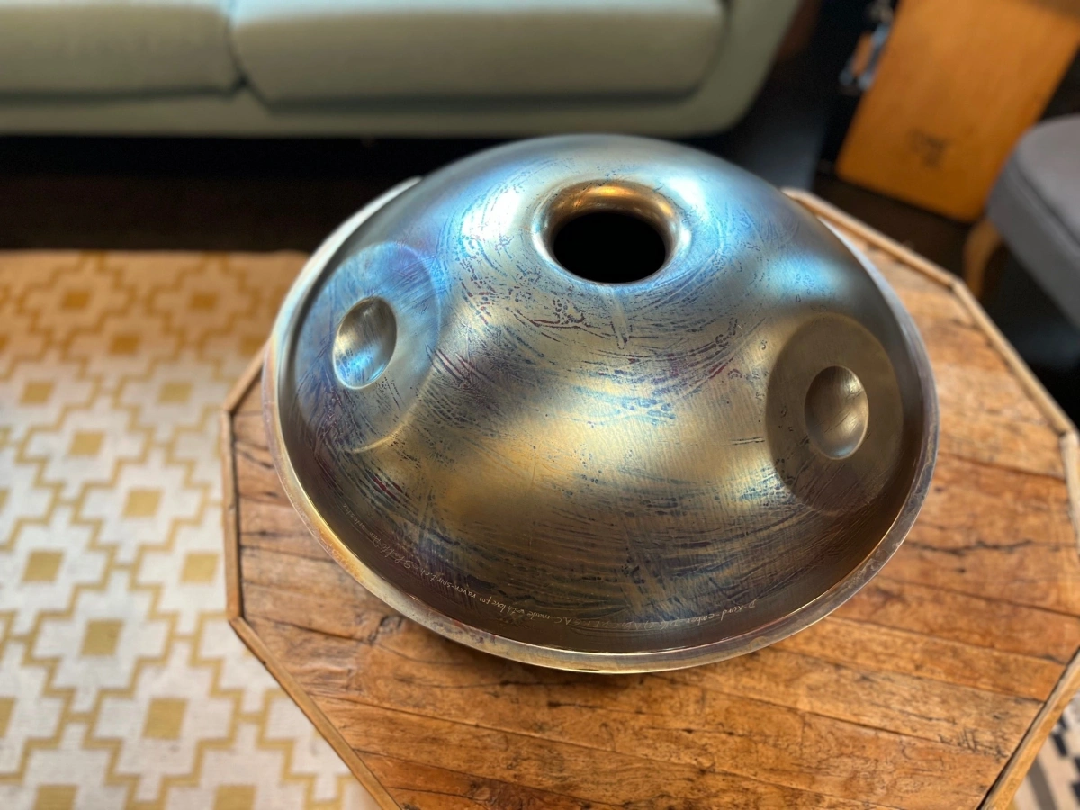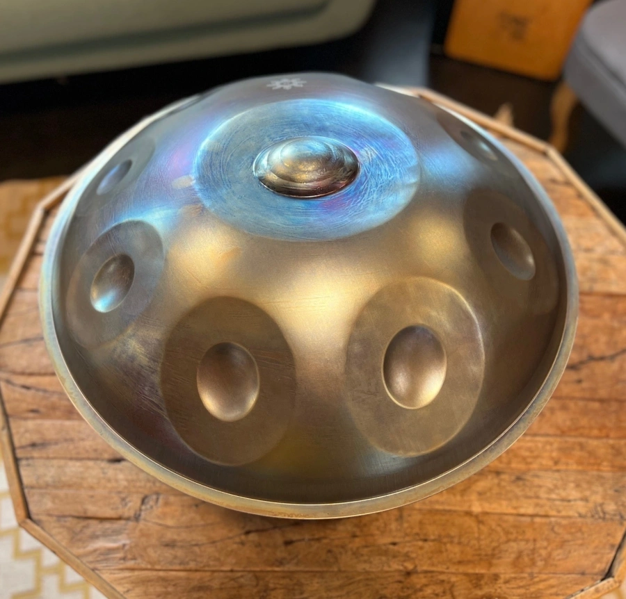 Gefertigt aus Ember Steel, überzeugt die ShaktiPan durch eine warme, lange tragende Schwingung und einen besonders weichen, sensiblen Anschlag. Dieses hochwertige Edelstahlmaterial ist rostfrei, pflegeleicht und aussergewöhnlich stimmstabil. Gleichzeitig reagiert die Oberfläche fein auf sanfte Berührungen und macht die ShaktiPan ideal für ruhiges, ausdrucksstarkes Spiel. Jede ShaktiPan wird in sorgfältiger Handarbeit geformt und gestimmt. So entsteht ein echtes Unikat mit eigenem Charakter und Seele.