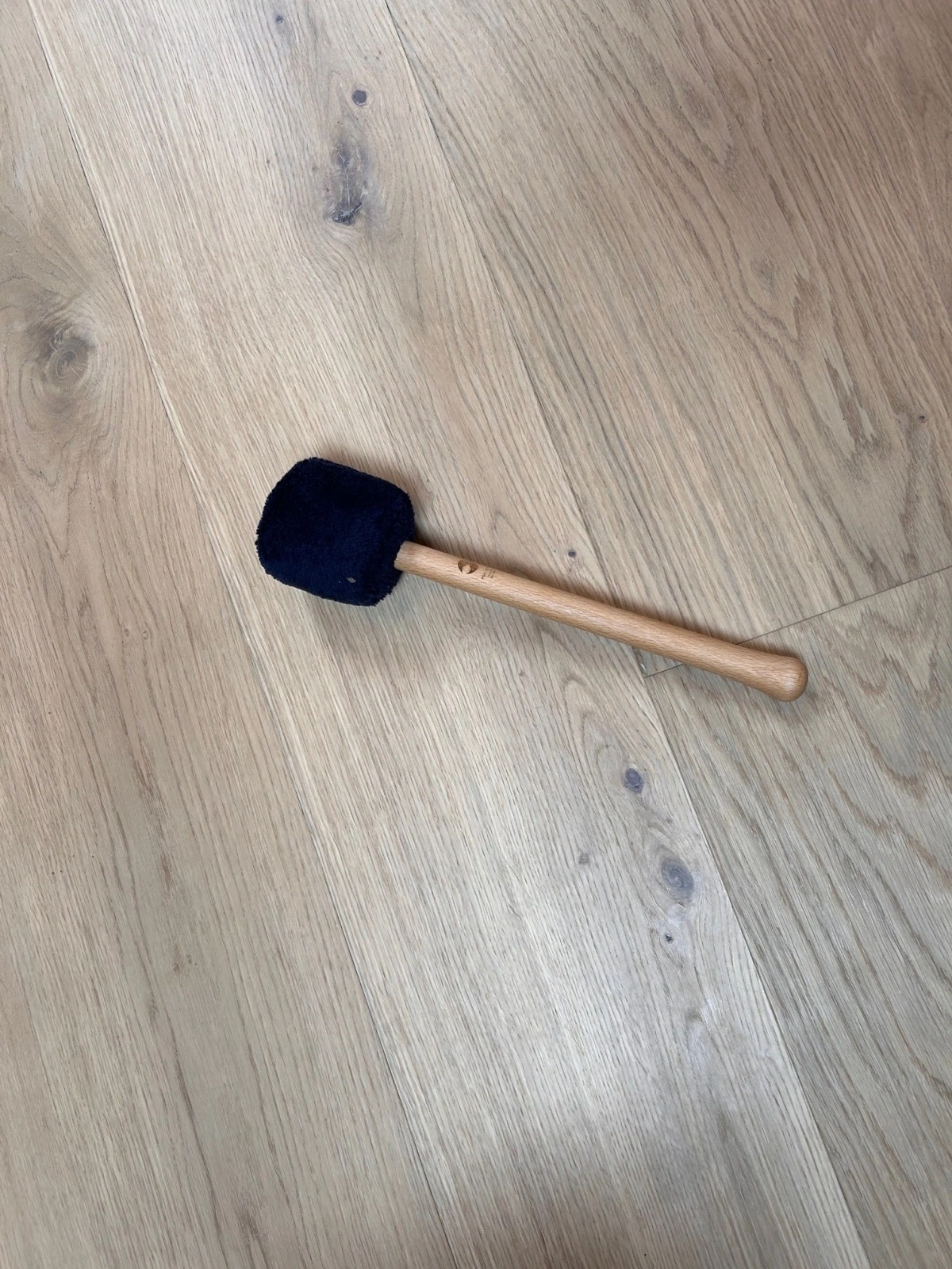 Der M174 von ollihess ist ein besonders leichter Gongschlägel mit nur 174 g, ideal für schnelle Rhythmen, Spiel mit Schlägelpaaren und längere Einsätze ohne Ermüdung. Der kurze Griff (20 cm) ermöglicht eine geringe Hebelwirkung, verhindert ungewollten Kontakt mit dem Gong und sorgt für klare, klangvolle Schläge – besonders in der Meditation.