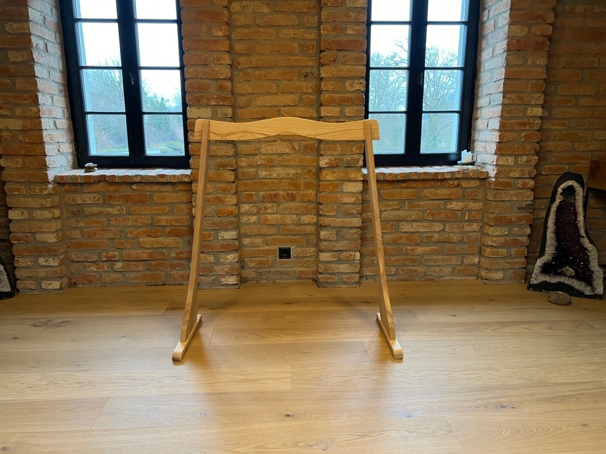 Der Gongständer aus hochwertigem Eschenholz ist die perfekte Wahl für Ihren Gong. Mit seiner stabilen Konstruktion und der einfachen Montage ohne Werkzeug bietet er eine sichere Aufhängung für Gongs von 40 bis 100 cm Durchmesser. Die Oberfläche des Holzes ist geölt und zeigt eine helle, klare Maserung, die eine natürliche Eleganz und schöne Haptik verleiht.