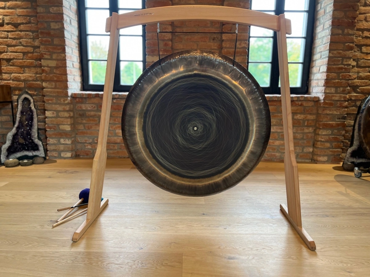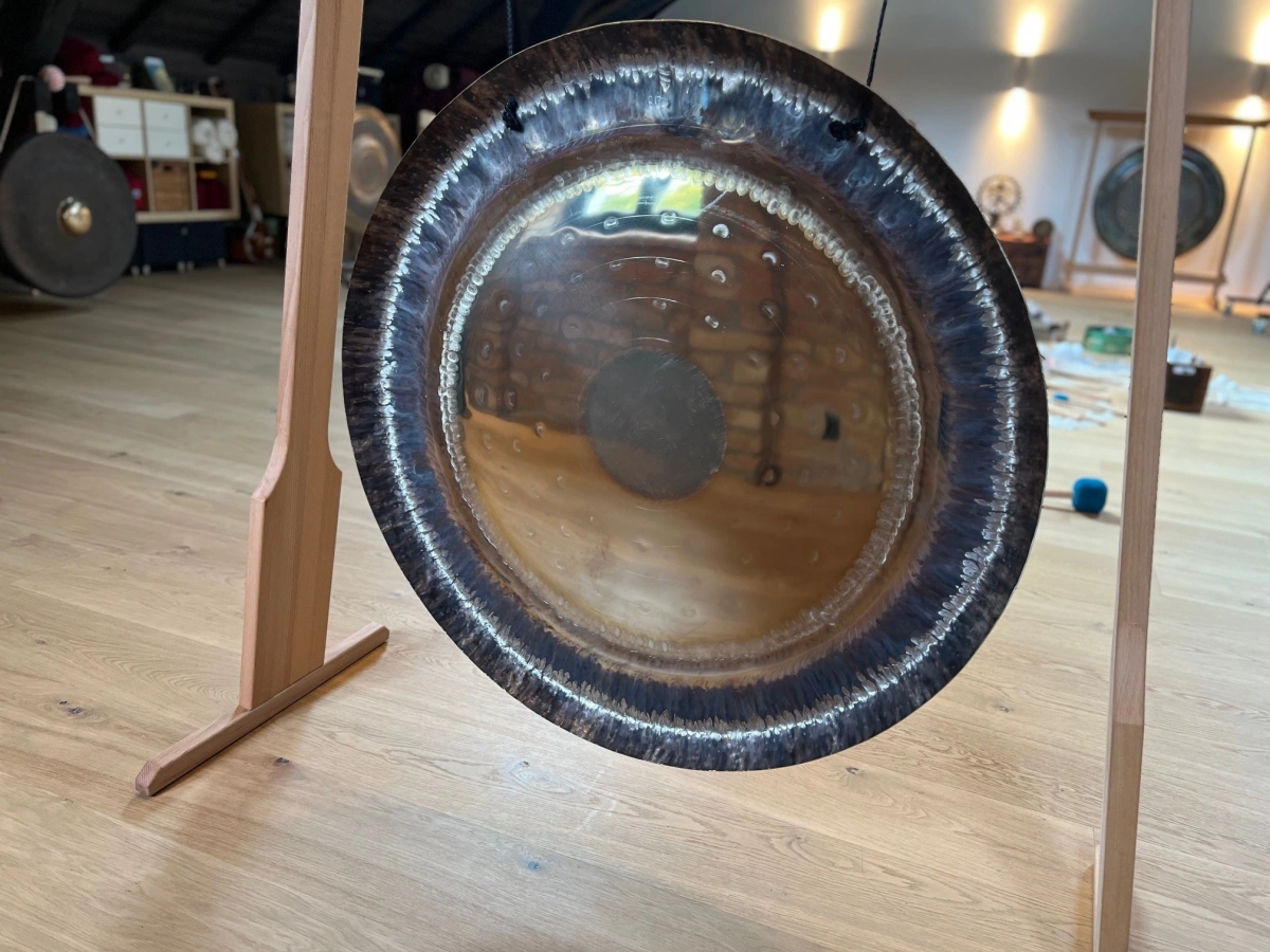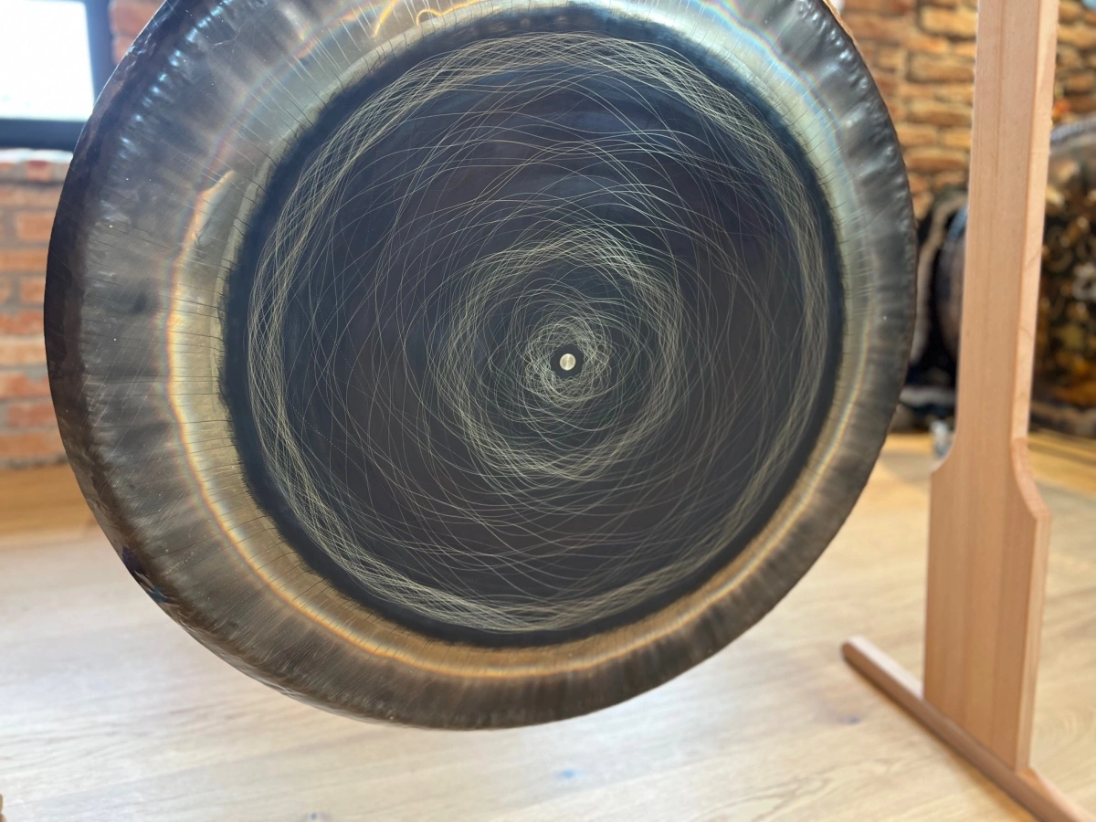 Auch die Gravuren trägt er von Hand auf, wodurch jedes Stück eine unverwechselbare Handschrift und besondere Ausstrahlung erhält. Seine Gongs sind echte Unikate, deren Obertonspektrum, warme Tiefe und harmonische Resonanz sie zu kraftvollen Begleitern für Meditation, Klangbäder, Rituale und künstlerische Arbeit machen.