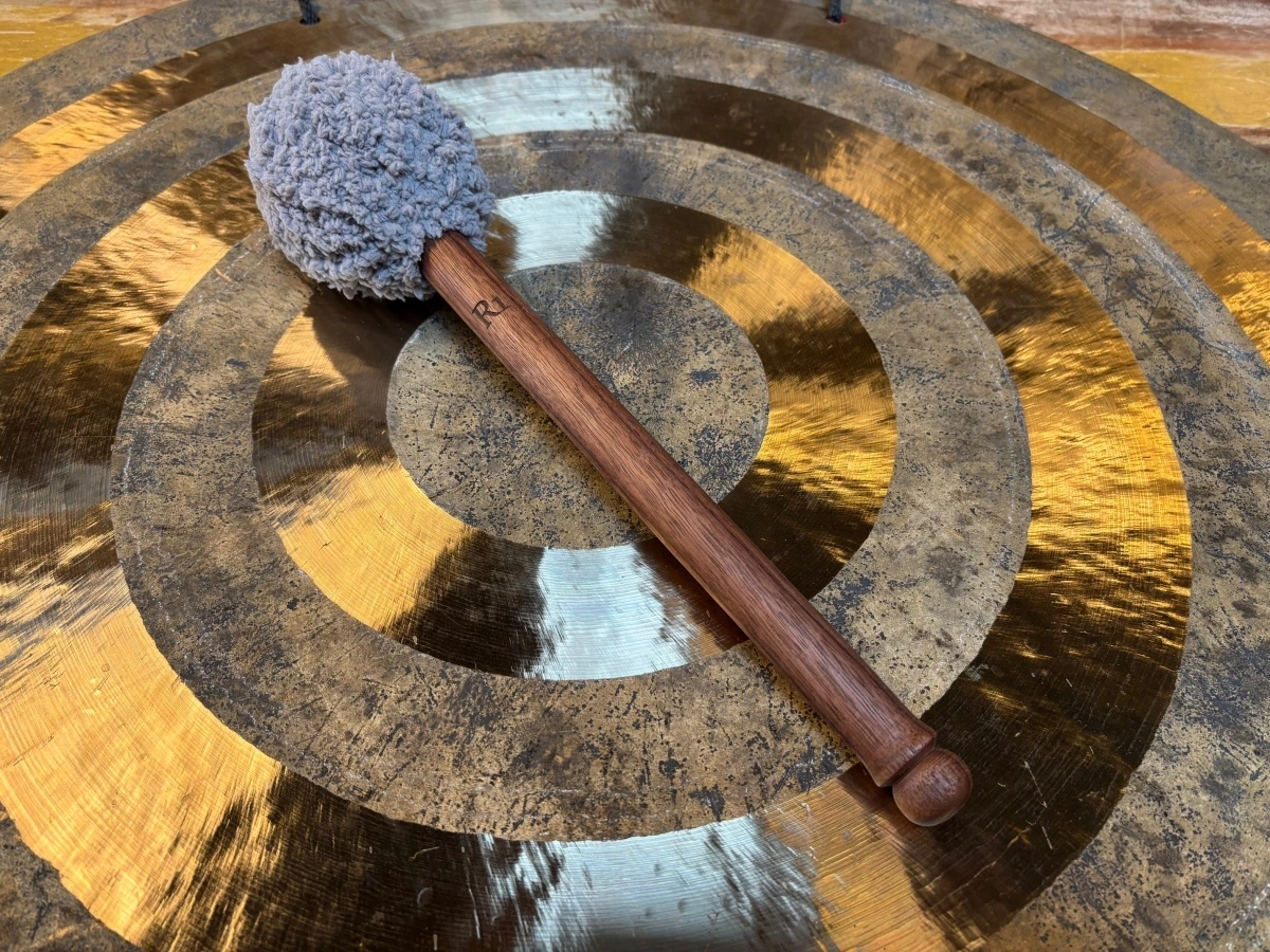 Besonders bei Gongs ab ca. 61 cm Durchmesser entfaltet der R1 Mallet seine Stärken. Die mittleren Töne treten klar hervor, warm und präsent, und verbinden sich harmonisch mit den tieferen Schwingungen des Instruments. Ideal für Klangarbeit, Meditation, therapeutische Settings und fein abgestufte dynamische Übergänge.