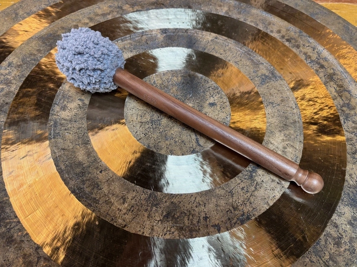 Im Inneren arbeitet eine Holzkugel mit ca. 5,1 cm Durchmesser, die diesem Mallet seine klare, sensible Ansprache verleiht. Durch sein geringes Gewicht eignet er sich hervorragend, um Obertöne und feine Harmonien aus dem Gong herauszulösen. Der Klang entfaltet sich weich, offen und detailreich, ohne harten Anschlag.
