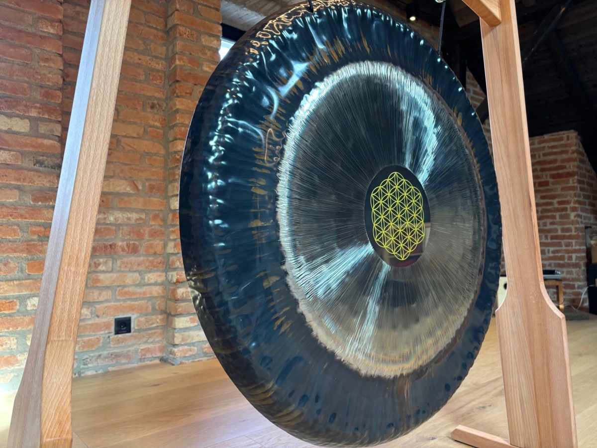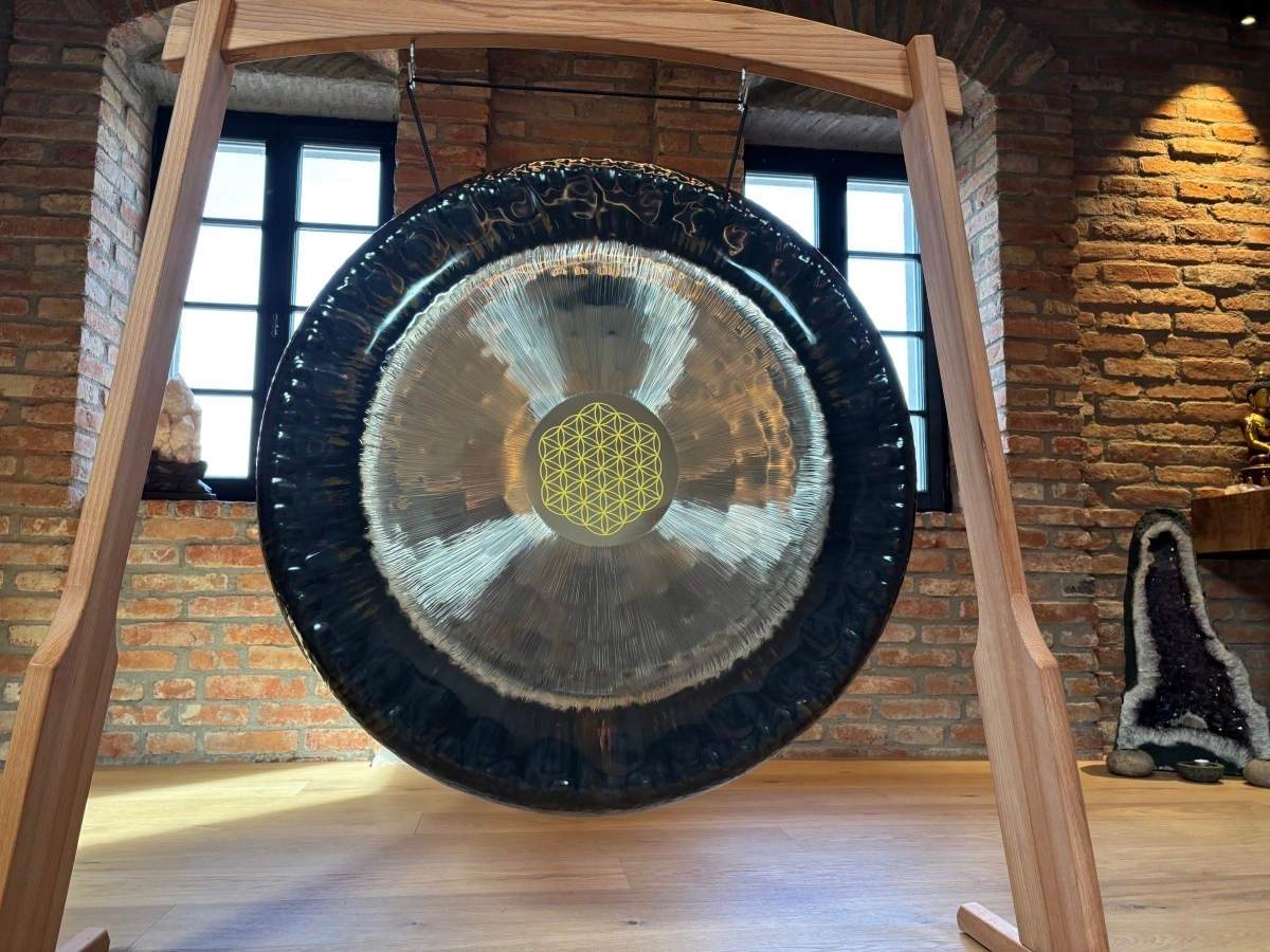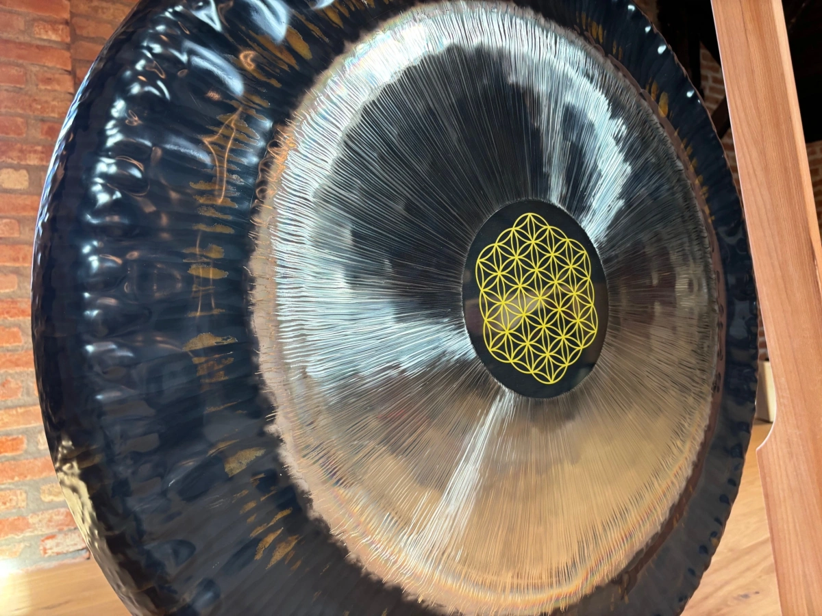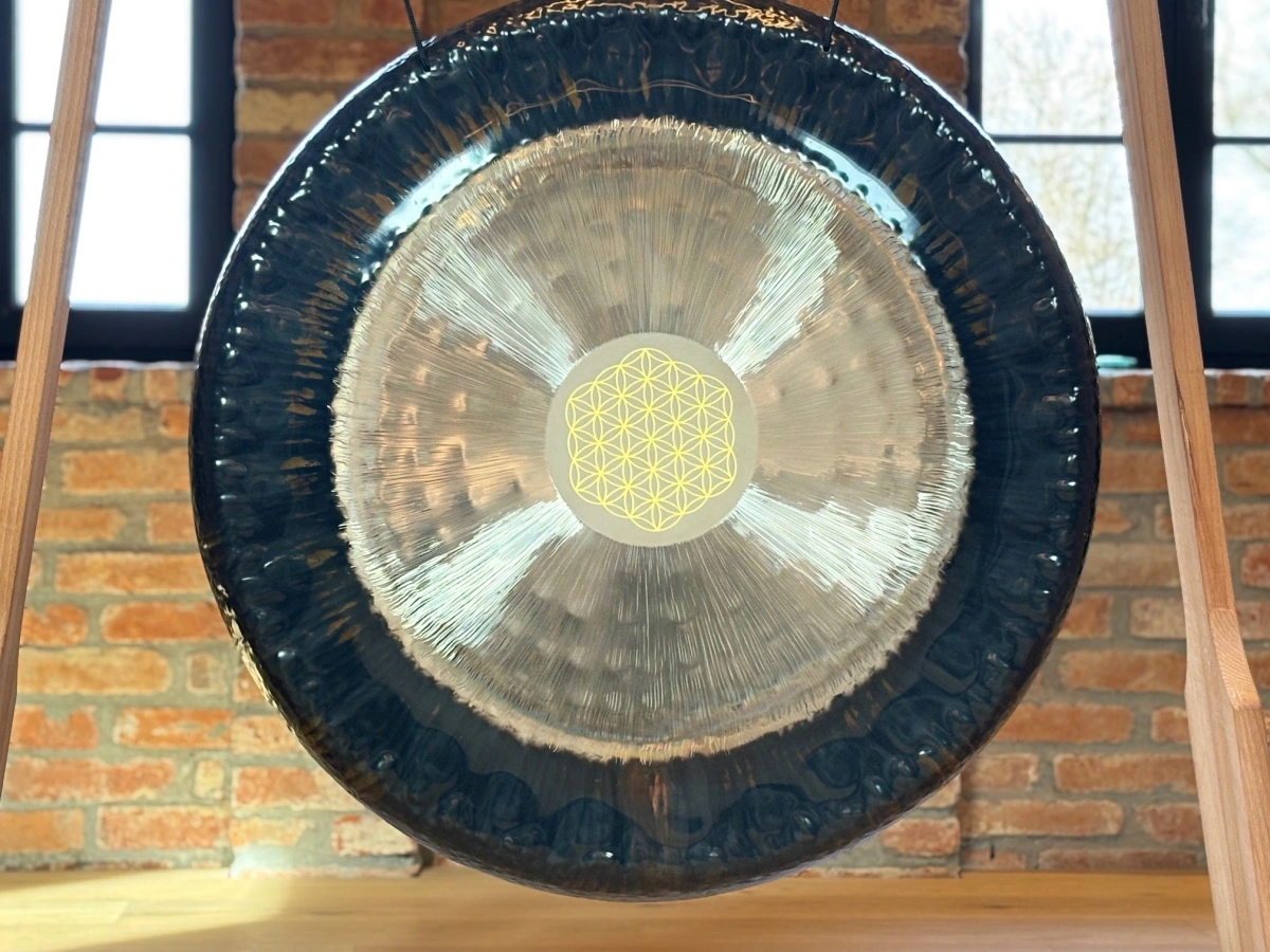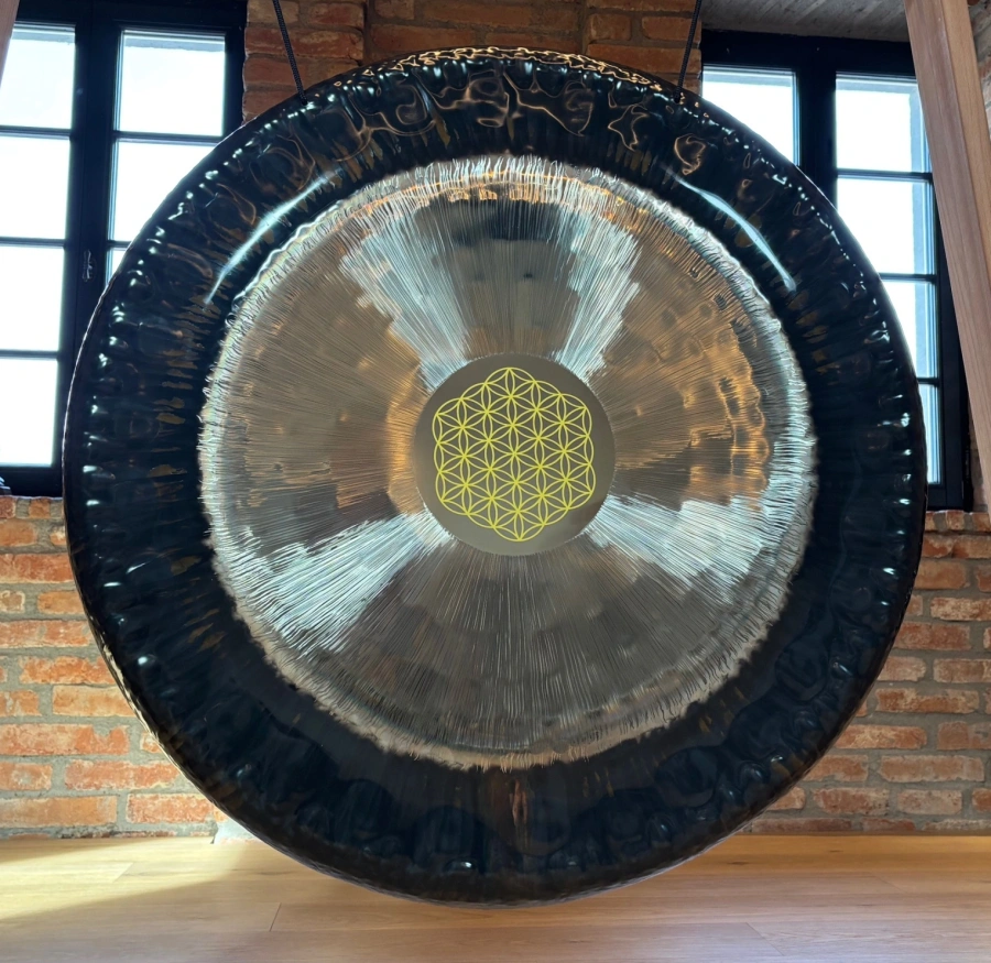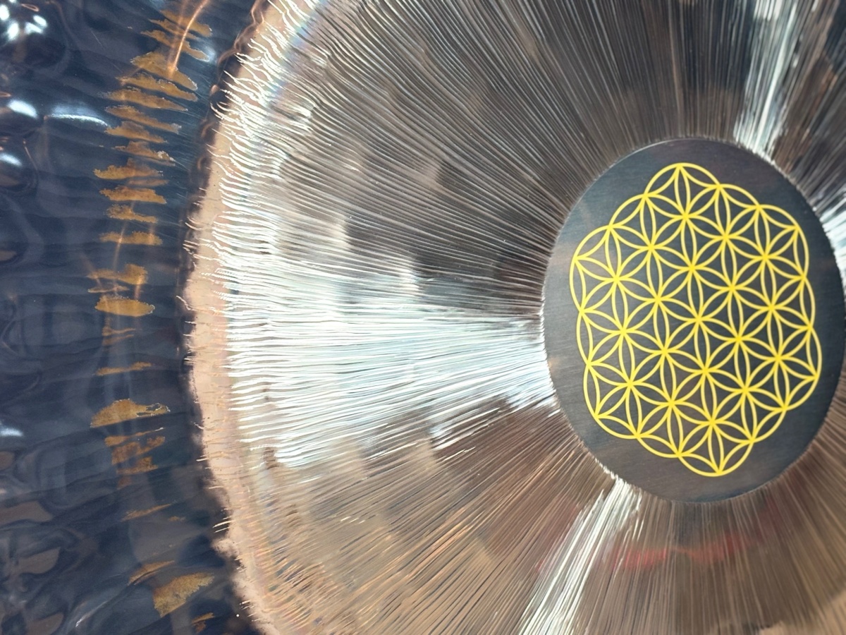 Jeder Gong ist ein Unikat – kleine Abweichungen in Form, Durchmesser oder Oberfläche sind normal und unterstreichen die Individualität des Instruments. Der Flower of Life Gong 36" eignet sich besonders für Meditation, Klangarbeit, energetische Praxis und Rituale, da er Räume mit harmonischer, feinstofflicher Resonanz erfüllt. Die Kombination aus Material, Form, Handarbeit und zentraler Hämmerung erzeugt eine intensive, harmonische Schwingung, die Körper, Geist und Sinne gleichermassen berührt.
