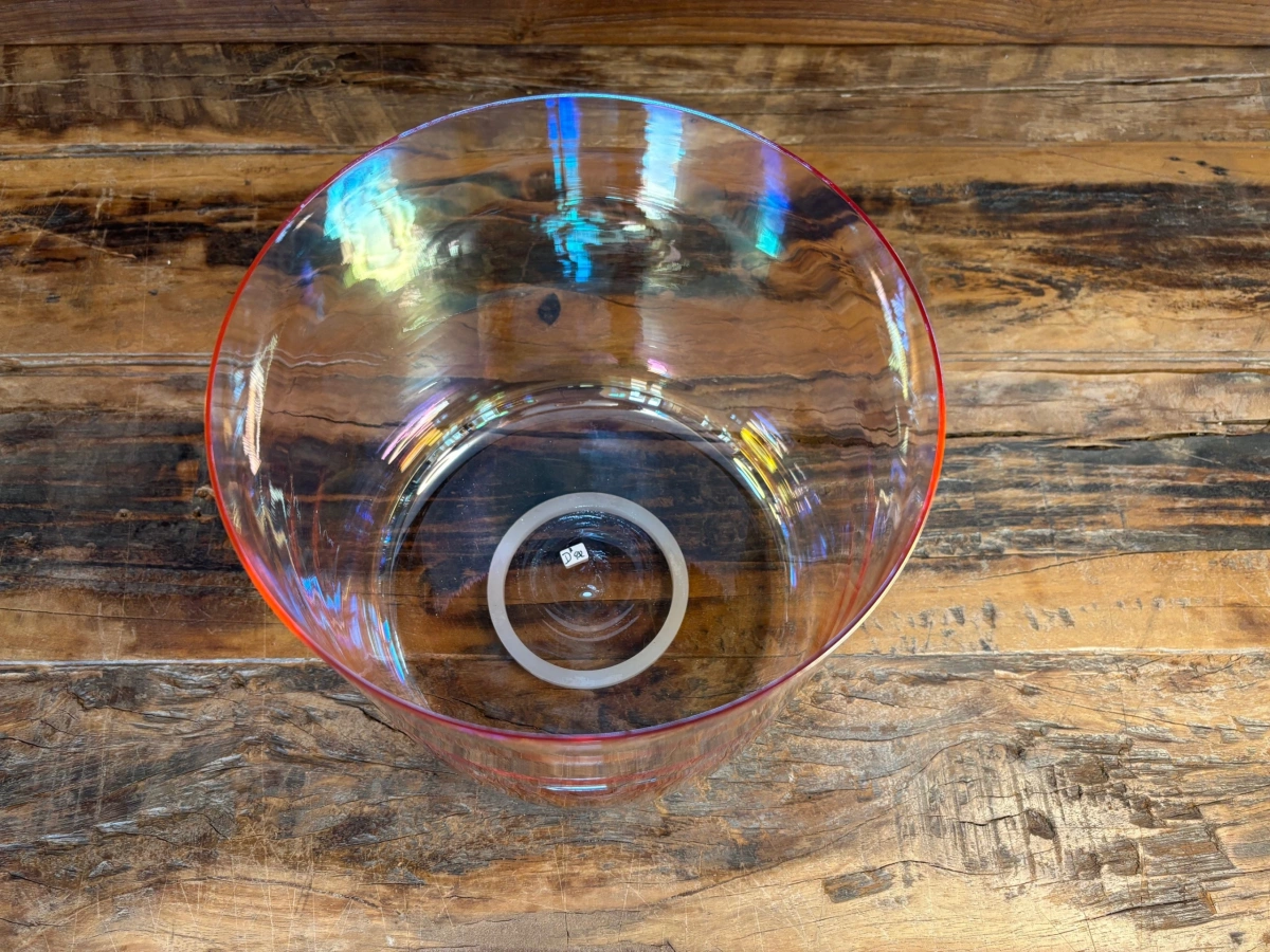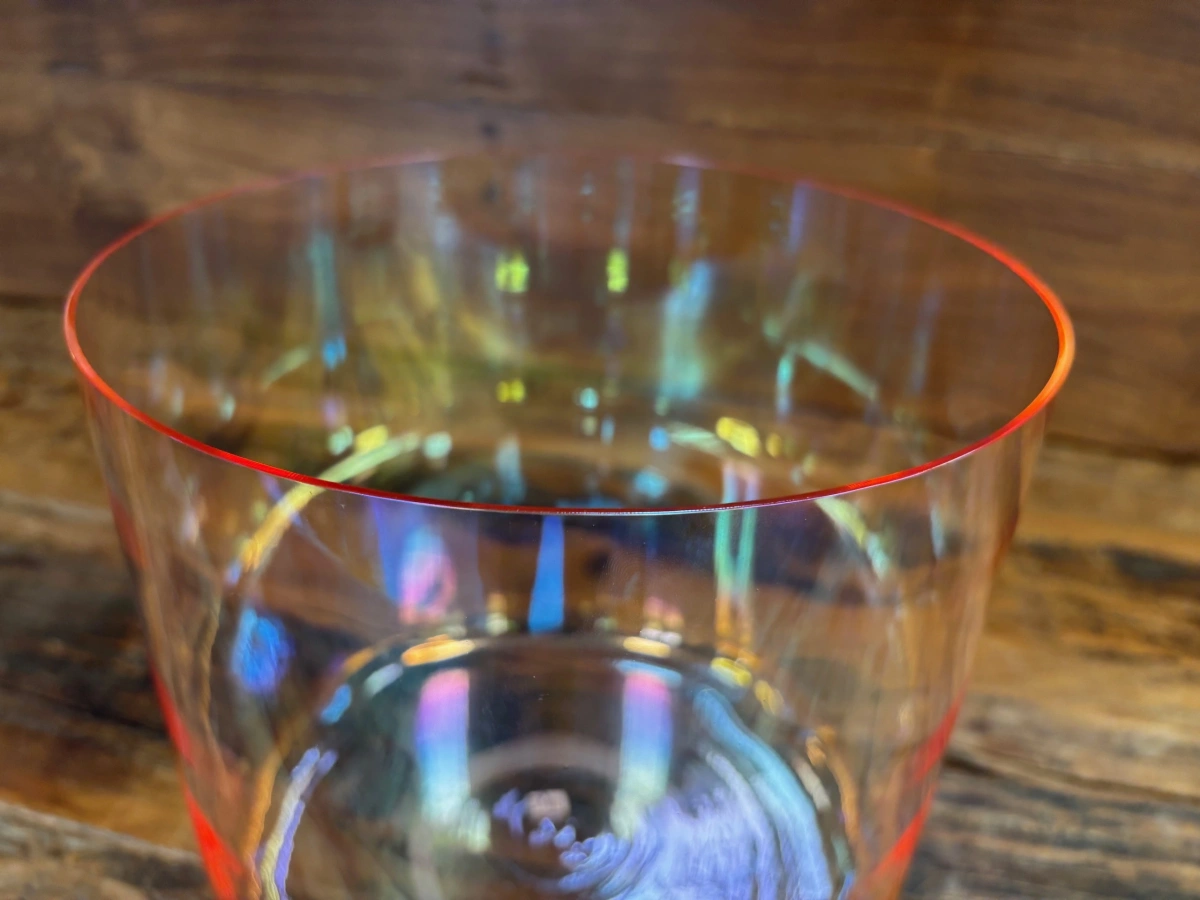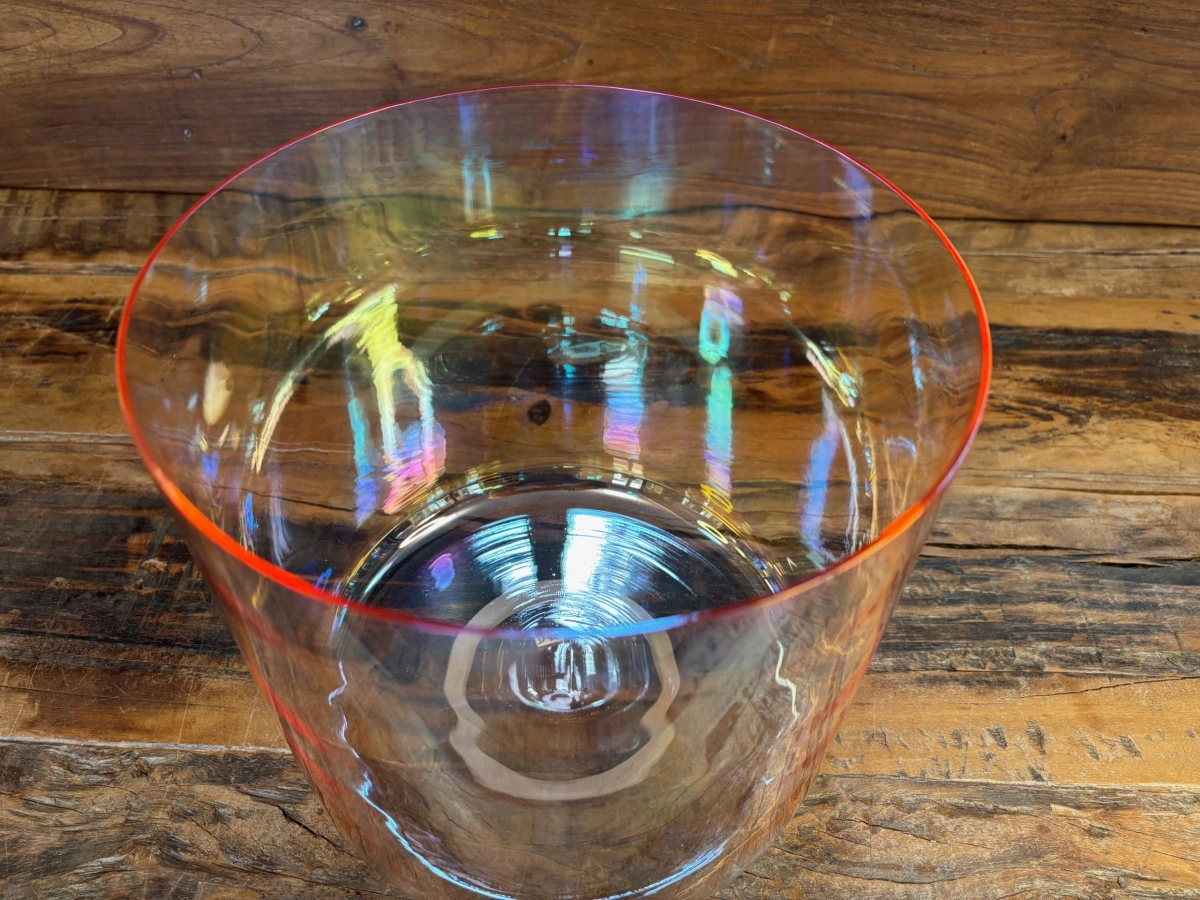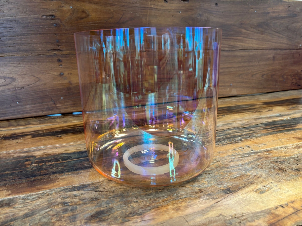 Die Basis jeder Schale ist hochreiner Quarzsand mit 99,99 % Siliziumdioxid. Bei über 2000 °C schmilzt das Material und wird in präzise Formen gegossen. Anders als bei frei geblasenem Glas entsteht jede Schale in einem kontrollierten technischen Prozess. Maschinen formen die Rohlinge, doch die eigentliche Kunst liegt im Feinschliff der Ränder. Jeder minimale Abtrag verändert die Tonhöhe, bis Grundton, Obertöne und Schwingungsverhalten perfekt harmonieren.