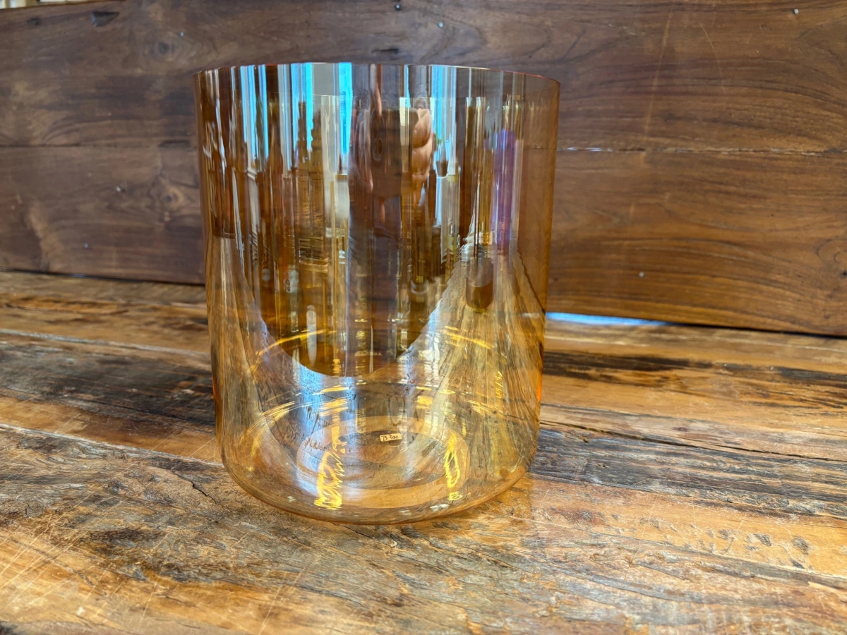 Die Basis jeder Schale ist hochreiner Quarzsand mit 99,99 % Siliziumdioxid. Bei über 2000 °C schmilzt das Material und wird in präzise Formen gegossen. Anders als bei frei geblasenem Glas entsteht jede Schale in einem kontrollierten technischen Prozess. Maschinen formen die Rohlinge, doch die eigentliche Kunst liegt im Feinschliff der Ränder. Jeder minimale Abtrag verändert die Tonhöhe, bis Grundton, Obertöne und Schwingungsverhalten perfekt harmonieren.