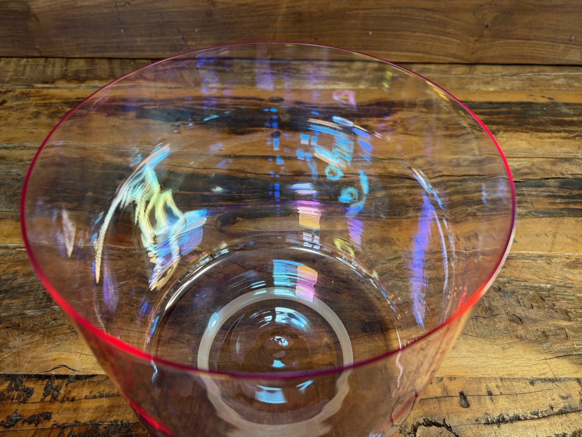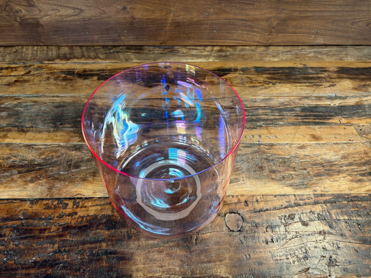 Die Basis jeder Schale ist hochreiner Quarzsand mit 99,99 % Siliziumdioxid. Bei über 2000 °C schmilzt das Material und wird in präzise Formen gegossen. Anders als bei frei geblasenem Glas entsteht jede Schale in einem kontrollierten technischen Prozess. Maschinen formen die Rohlinge, doch die eigentliche Kunst liegt im Feinschliff der Ränder. Jeder minimale Abtrag verändert die Tonhöhe, bis Grundton, Obertöne und Schwingungsverhalten perfekt harmonieren.
