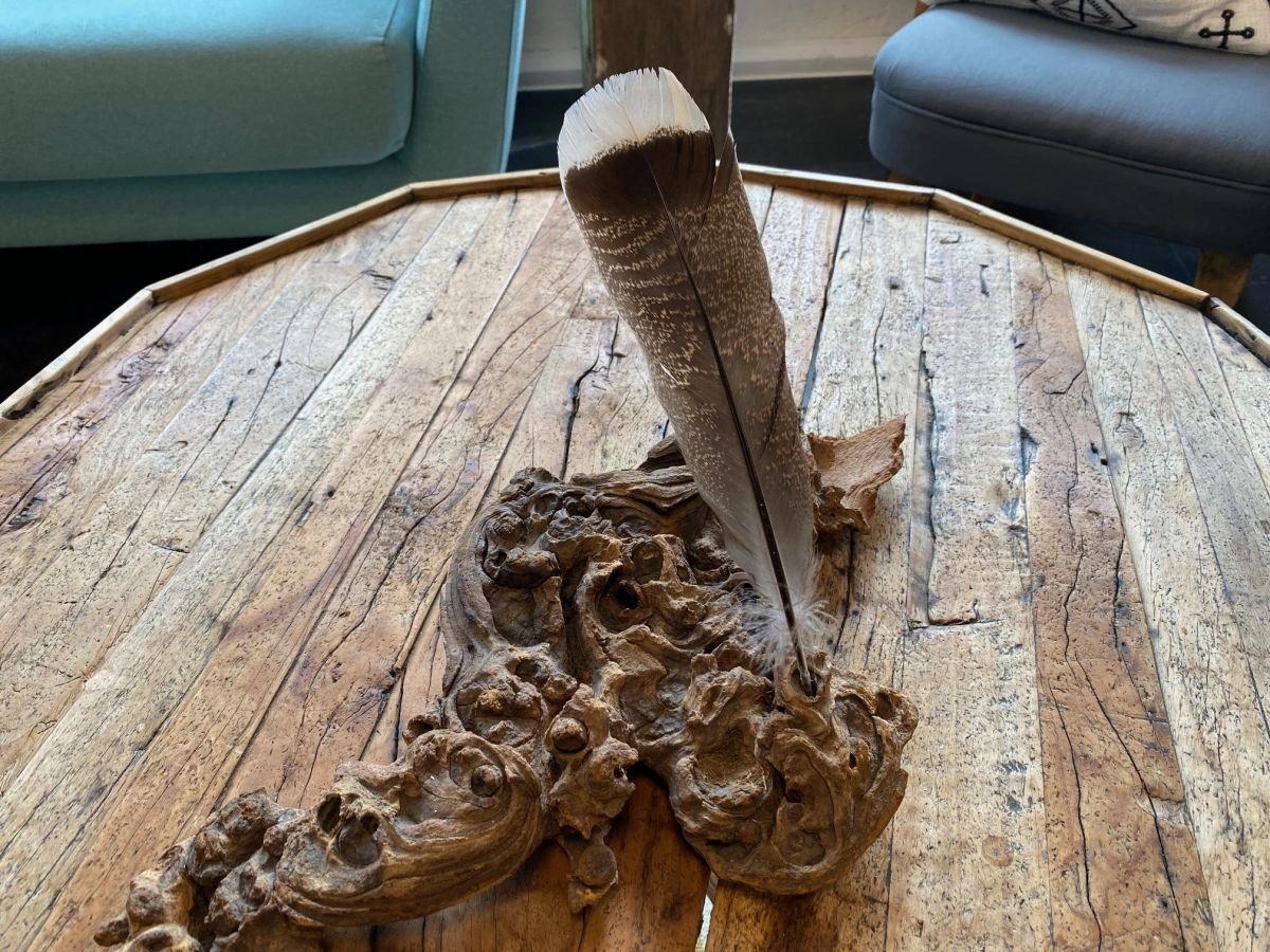 Auf Wunsch wählen wir für Dich mehrere Federn aus, die in Länge und Färbung harmonieren, sodass Du daraus einen eigenen Räucherfächer gestalten kannst. Solch ein Fächer wird traditionell für Räucherungen und Reinigungsrituale verwendet, um den Rauch sanft zu verteilen und Räume, Gegenstände oder das eigene Energiefeld zu klären.