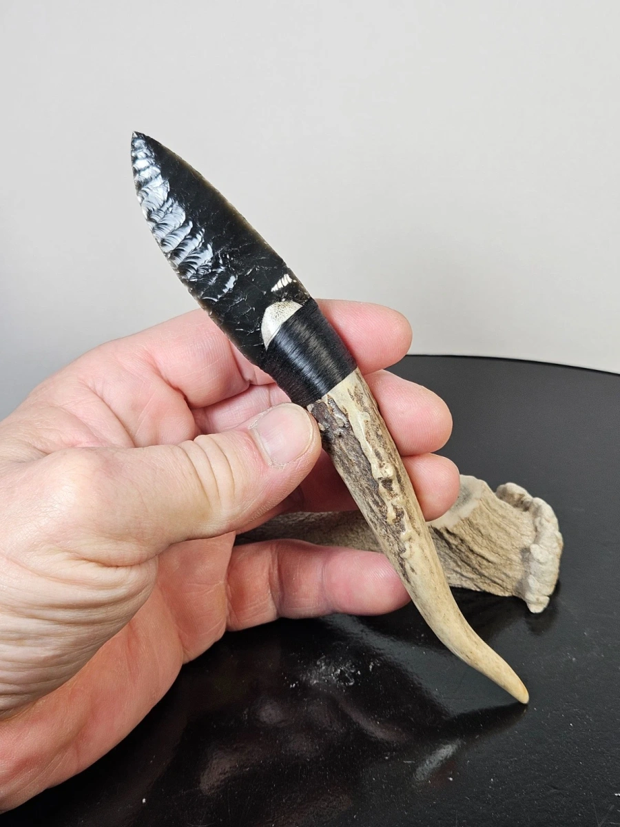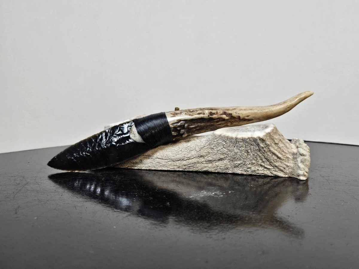 Obsidianmesser von Kenny Hull | Handgefertigtes Unikat aus Hirschhorn und Obsidian