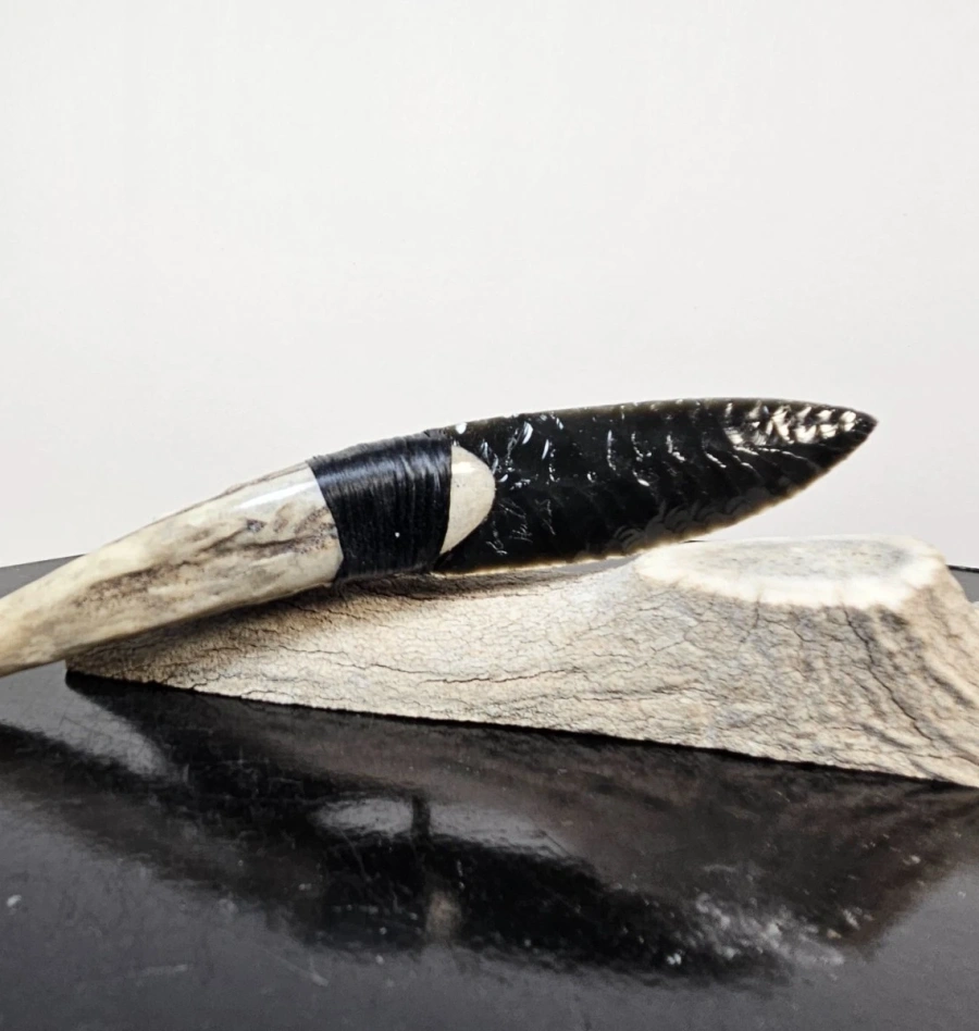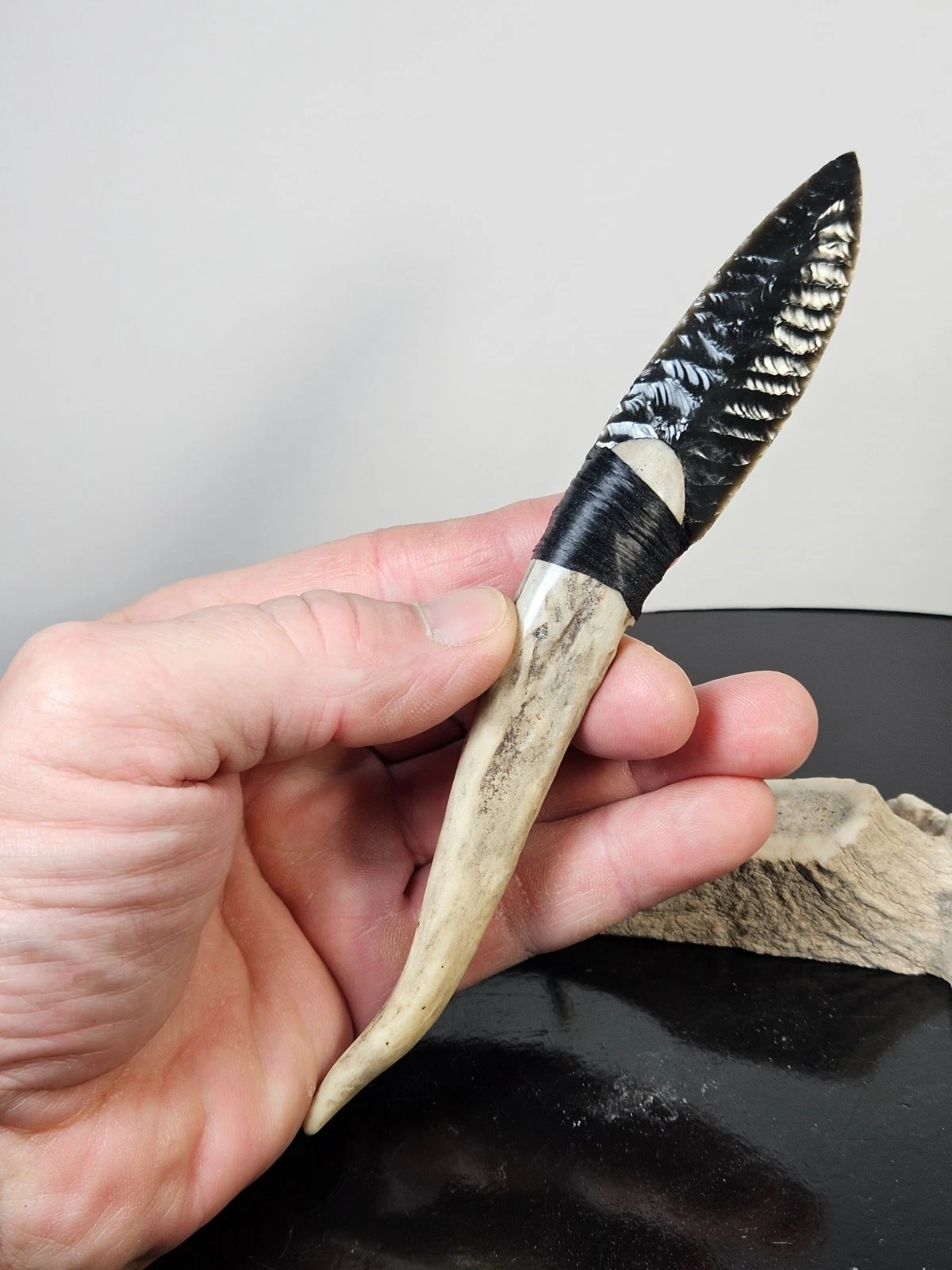 Obsidianmesser von Kenny Hull | Handgefertigtes Unikat aus Hirschhorn und Obsidian