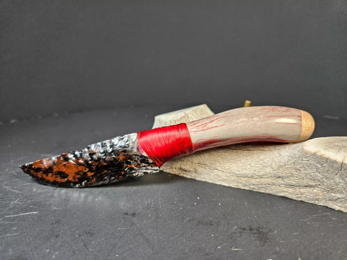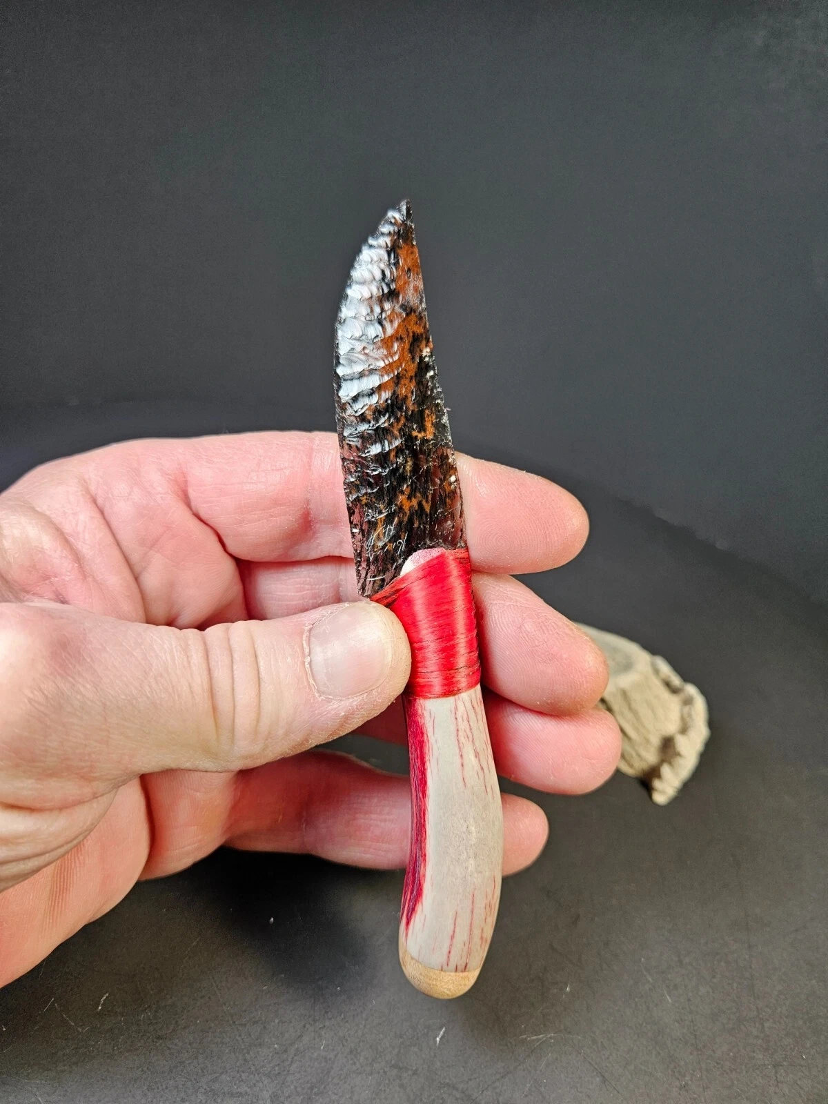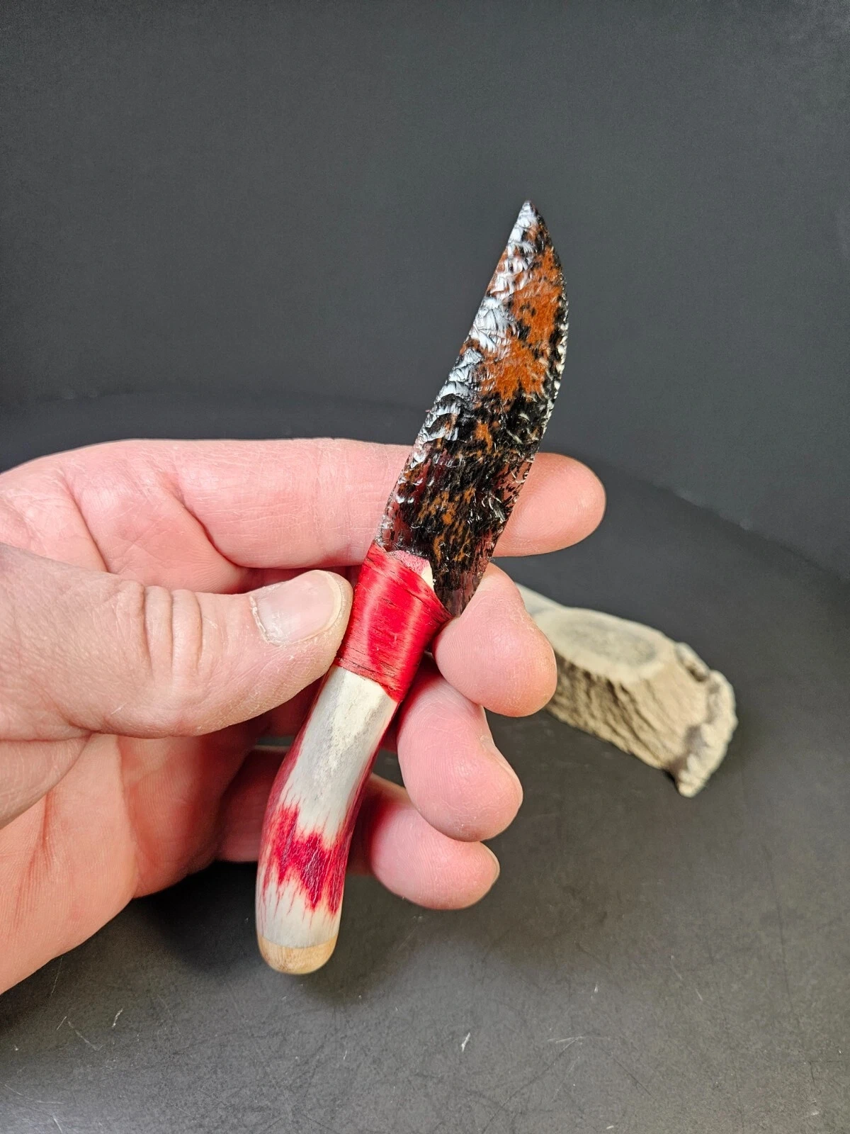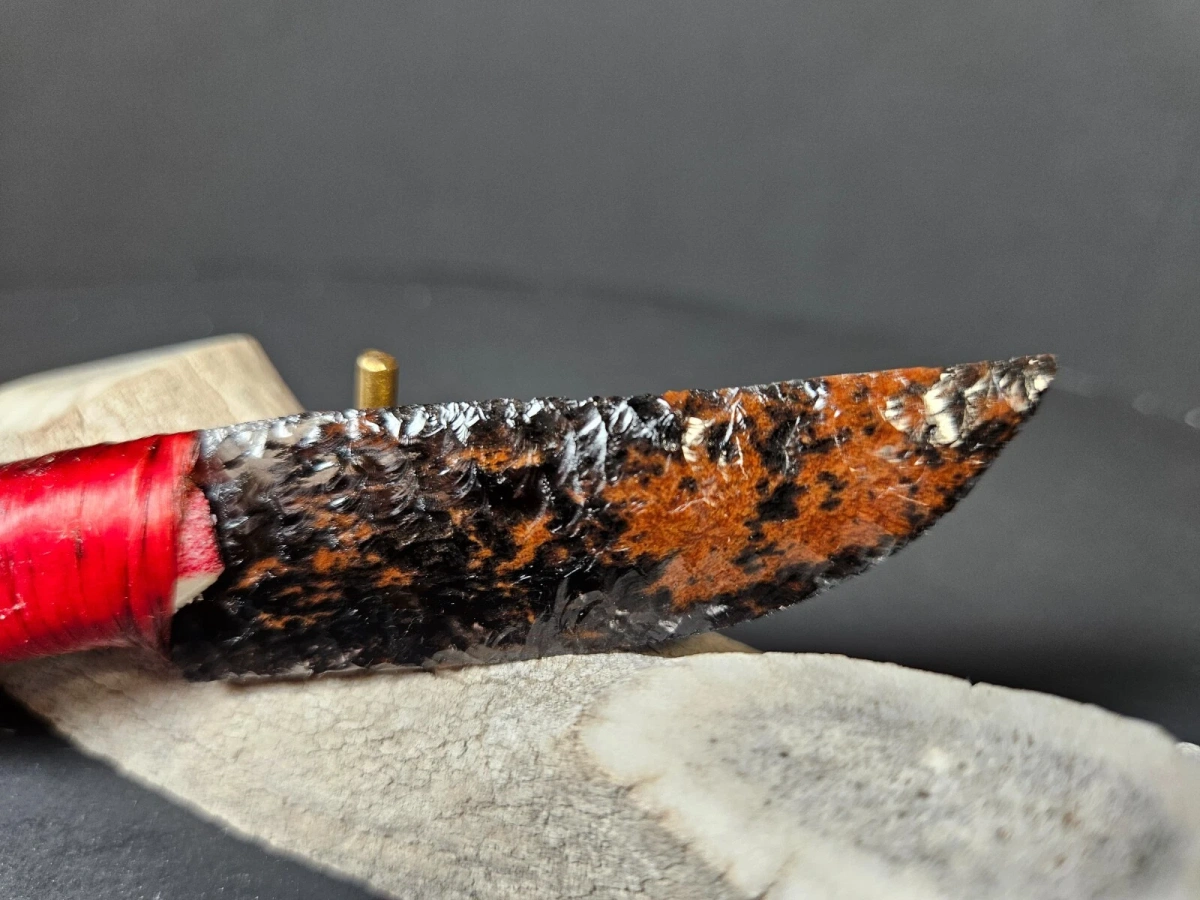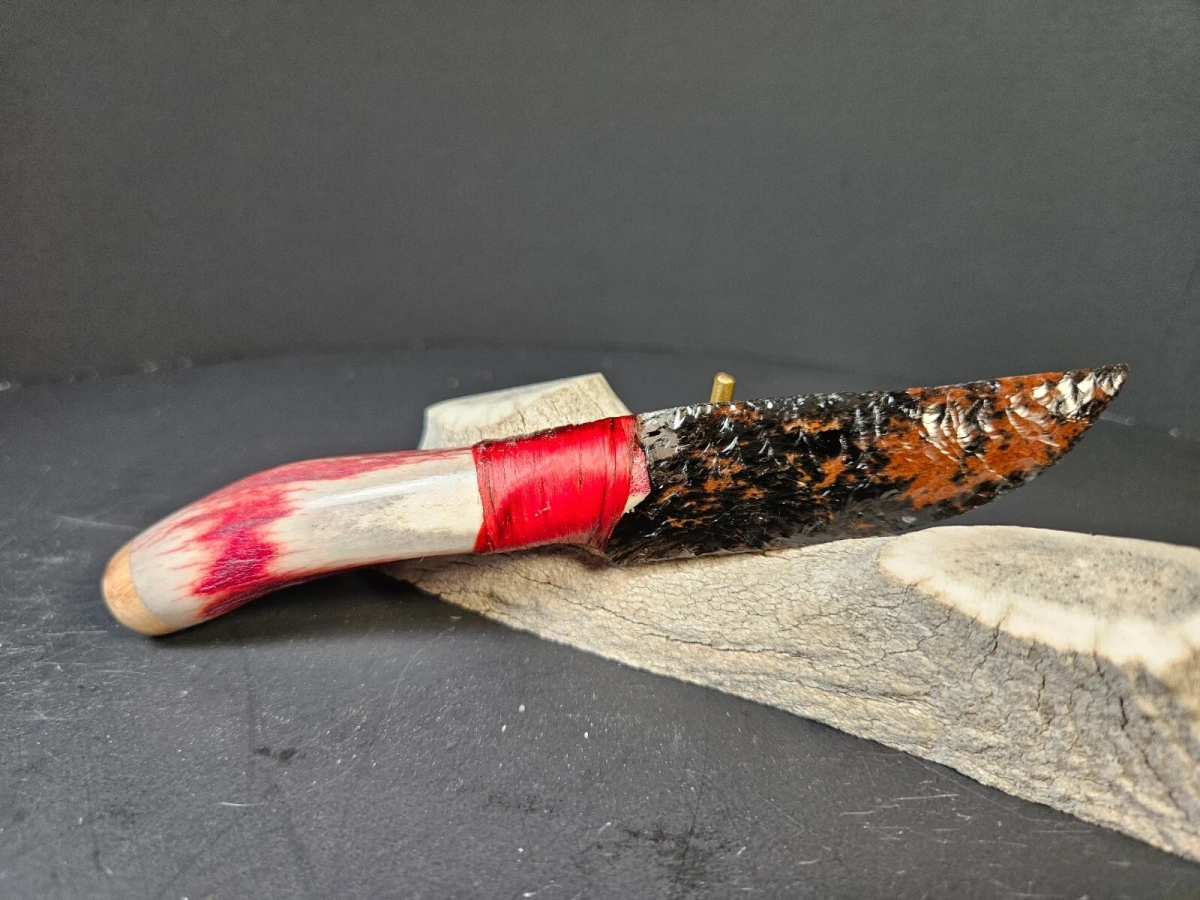 Obsidianmesser von Kenny Hull | Handgefertigtes Unikat aus Hirschhorn und Mini Lace Obsidian