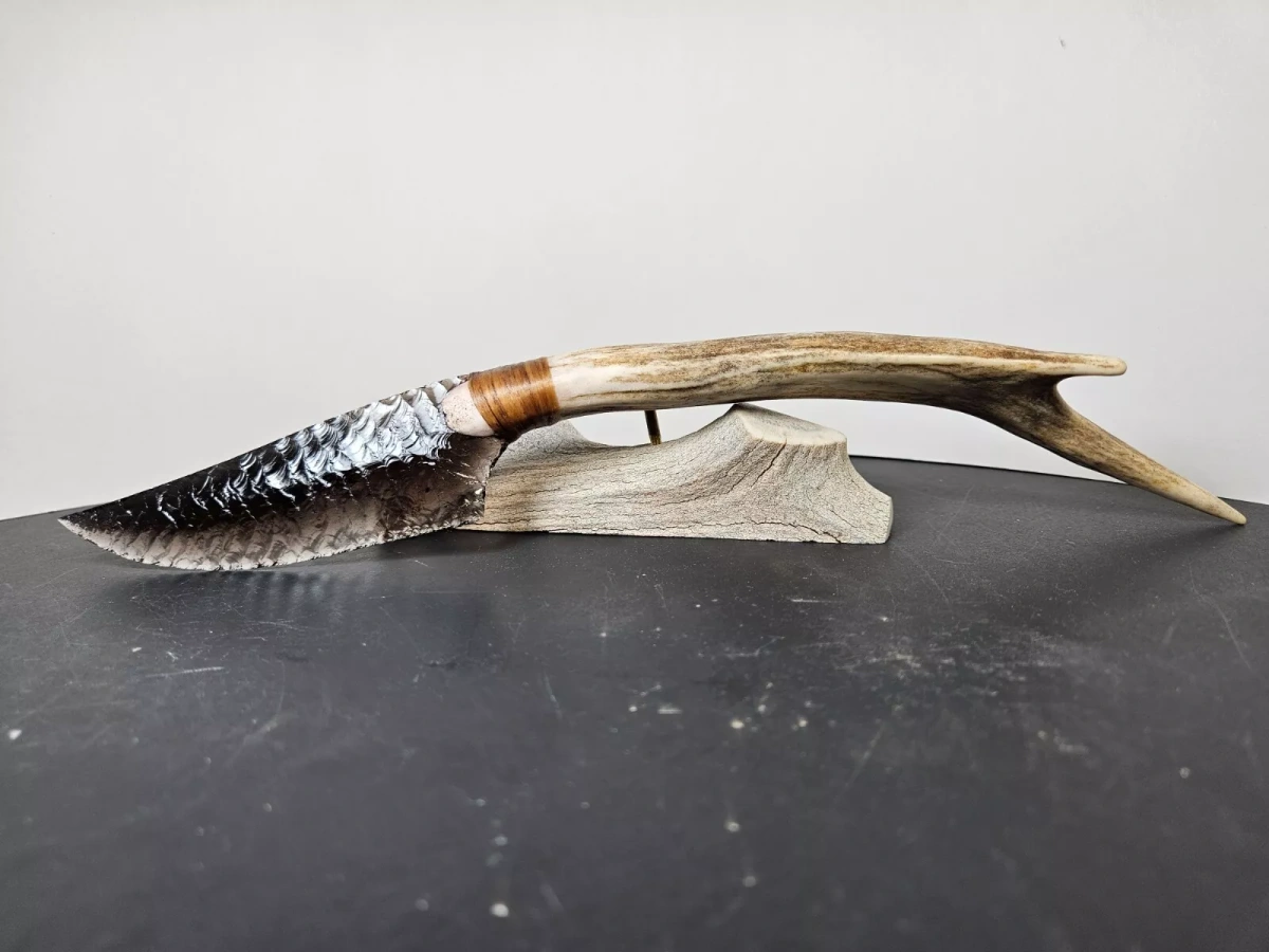 Obsidianmesser von Kenny Hull | Handgefertigtes Unikat aus Hirschhorn und Obsidian
